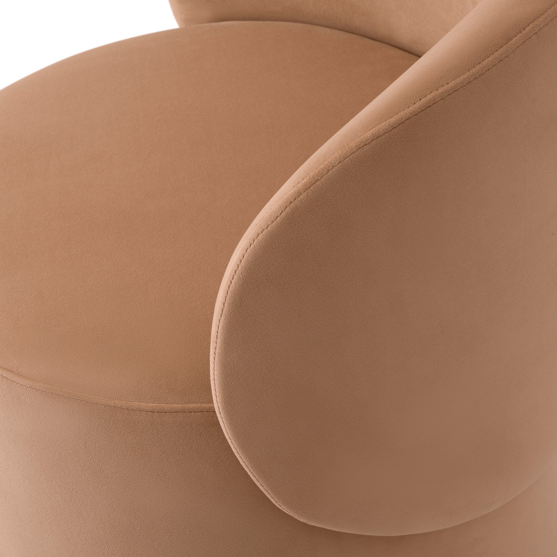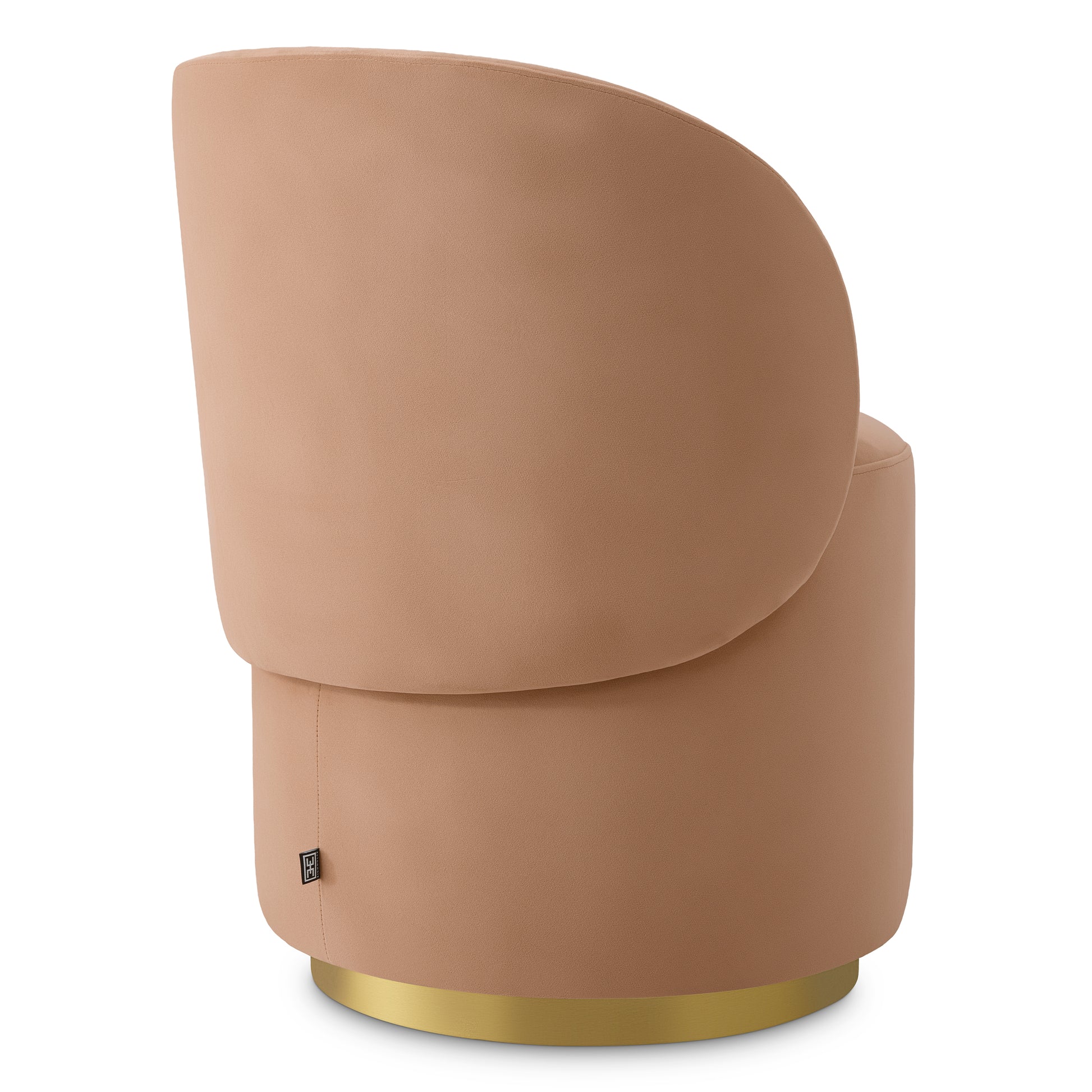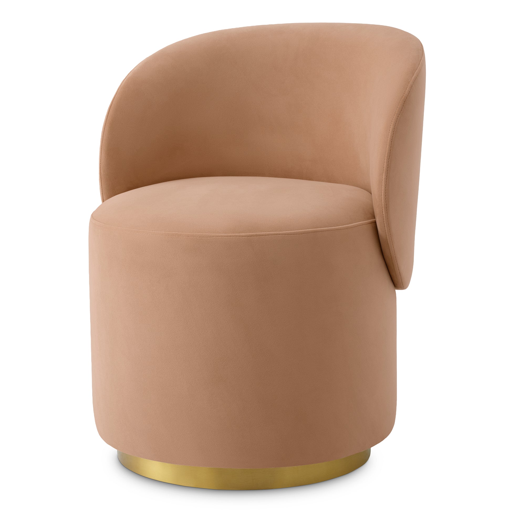 Matstol Greer från Eichholtz kombinerar modern elegans med hög komfort och exklusiva material. Den stilrena designen gör stolen till ett sofistikerat tillskott i matsalen och passar perfekt runt både moderna och klassiska matbord. Stolen är klädd i Savona-tyg i en varm camelton som ger ett mjukt och inbjudande uttryck. Den eleganta basen i borstad mässingsfinish ger en lyxig känsla samtidigt som den snurrbara konstruktionen gör stolen både praktisk och bekväm i vardagen.