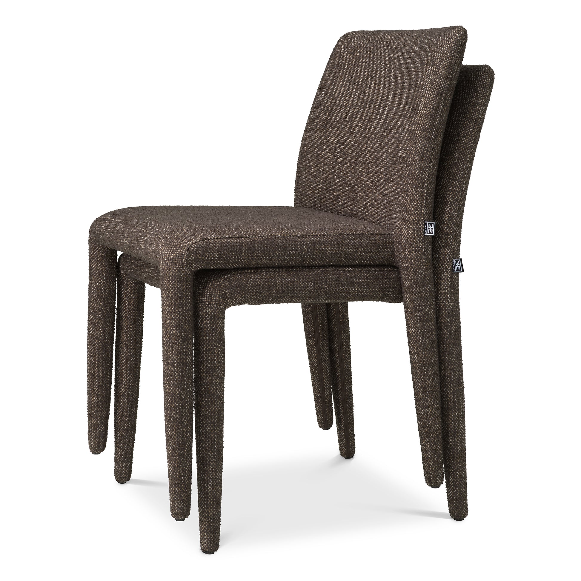 Täckta med ett sofistikerat tyg med fläckresistent finish, förhöjer dessa stolar varje matplats med sin varma, bruna ton. Designade för både stil och funktion, är de stapelbara för ökad flexibilitet utan att kompromissa med komfort eller utseende. Njut av tidlös bekvämlighet och hållbar elegans.