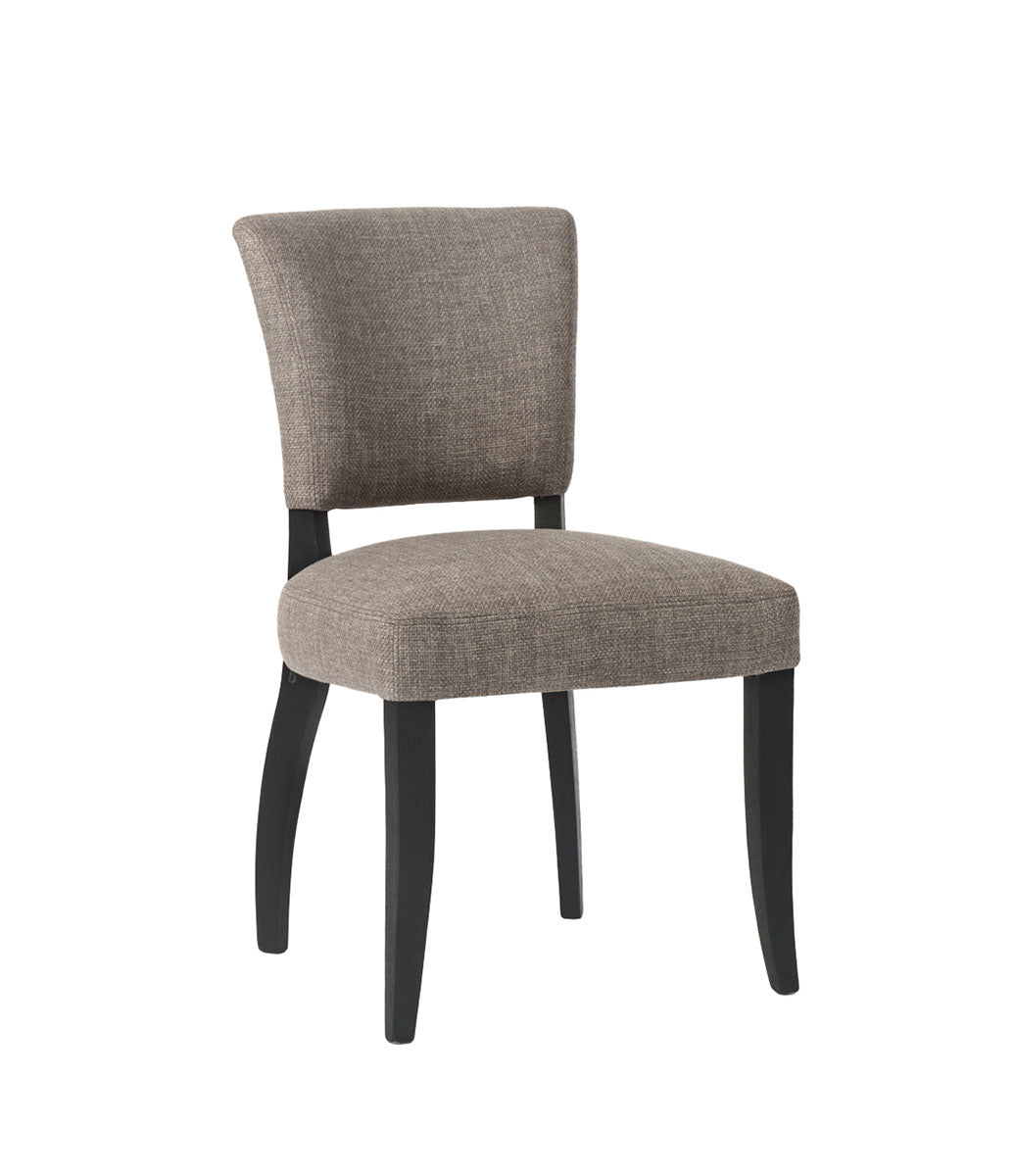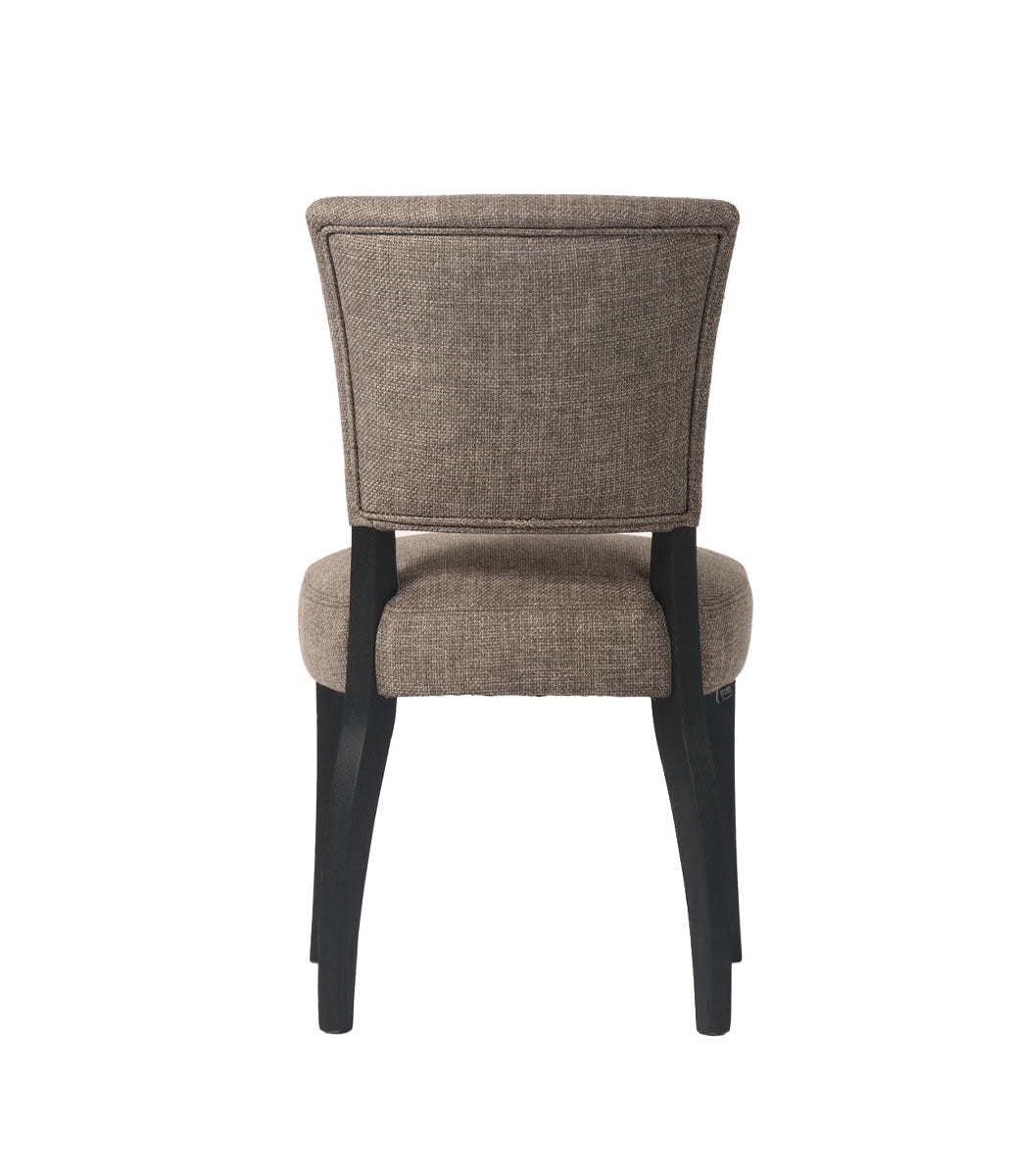 Mandy matstol från Artwood är en exklusiv stol i tidlös design, klädd i det slitstarka tyget Sway Liver. Den vackert formade ryggen pryds av dekorativa nitar som tillför en sofistikerad detalj och ger stolen en elegant karaktär – perfekt för att skapa en stilsäker atmosfär i matsalen. Den mjukt vadderade sitsen och den lätt böjda ryggen erbjuder hög komfort även vid längre måltider. Benen i svartlackerat massivt trä ger en stabil bas och skapar en fin kontrast mot det mörka tyget, vilket framhäver stolens moderna uttryck.