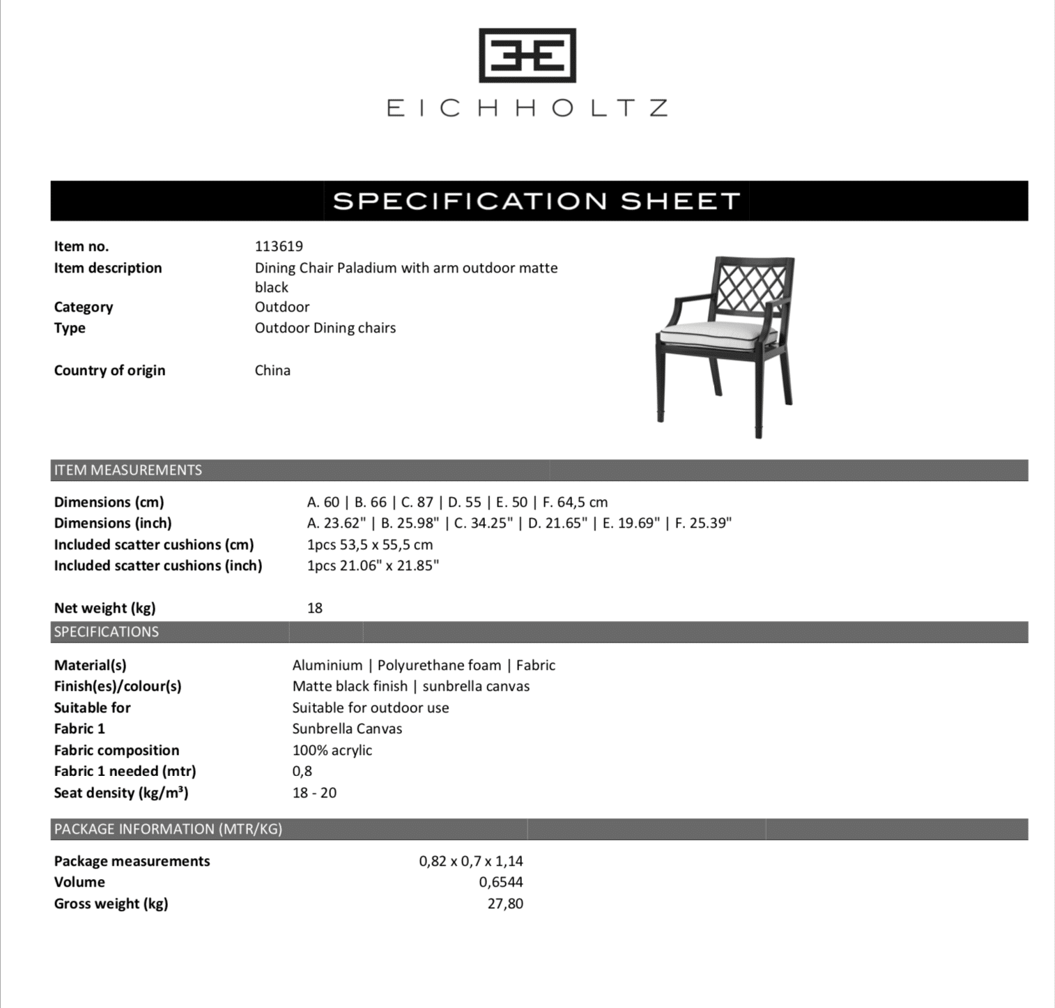 Elegant och lyxig matstol till utomhusbordet på verandan, pergolan eller vinterträdgården. Lackad aluminium som inte rostar och tjock, skön dyna.
