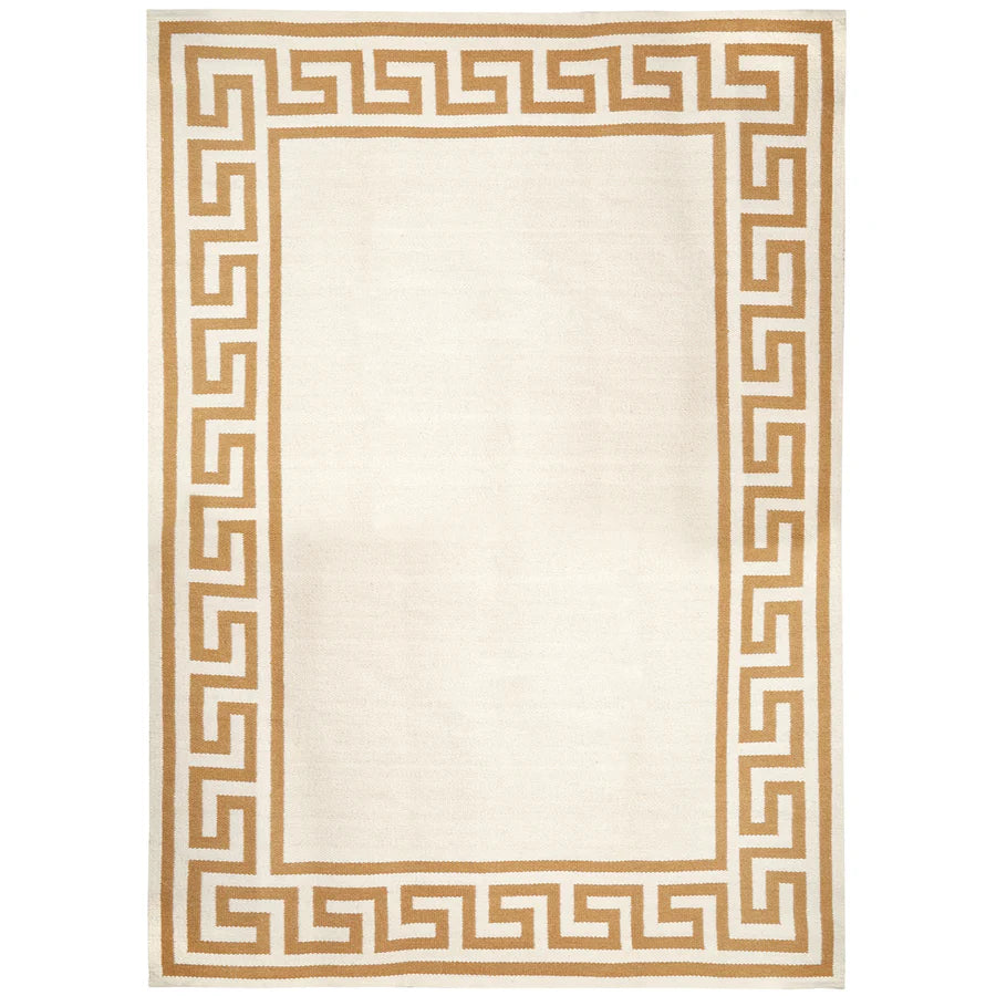 Traditionell men ändå helt ny. I kameltoner är Jonathan Adlers matta med grekisk nyckelbård en lugnande bakgrund för ditt hem, eller skapa ett grafiskt intryck med svart och naturfärger.