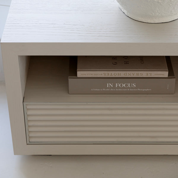 Hayden mediabänk från Artwood i ekfanér är designad för att ge ditt vardagsrum en naturlig och sofistikerad känsla. Bänken har en tydlig och vacker trästruktur som framhäver ekens varma toner och ger ett exklusivt, tidlöst utseende. Mediabänken är utrustad med två rymliga lådor med dolda öppningar, vilket skapar ett sömlöst och minimalistiskt intryck samtidigt som den erbjuder praktiskt förvaringsutrymme för fjärrkontroller, kablar och andra småsaker. Hayden mediabänk passar perfekt under TV och är en elegant lösning för både moderna och klassiska inredningsstilar.