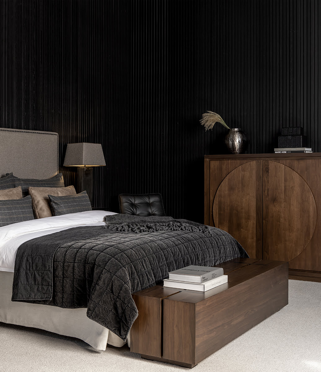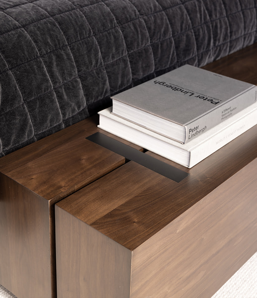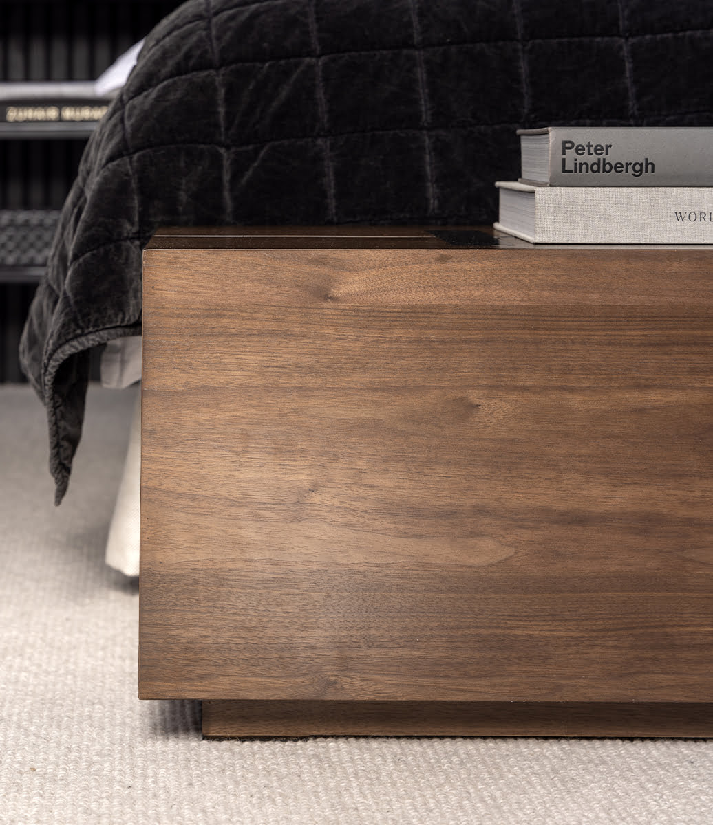Maddox är en modern och sofistikerad mediabänk från Artwood i färgen Valnöt. Bordet är i valnötsfanér och har en elegant slät yta och unika metalldetaljer i brons färg. Passar perfekt att placera tv:n på eller ställa vid änden av sängen som avlastningsbord.
