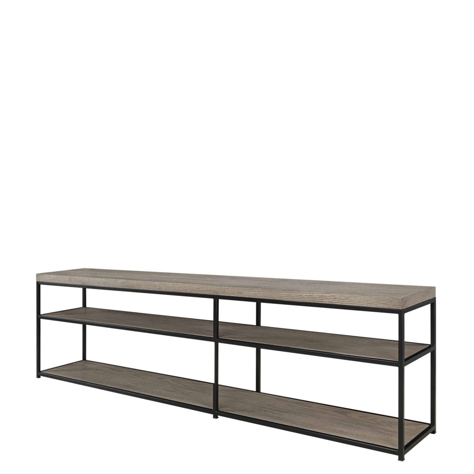 En stilsäker och snygg mediabänk som även fungerar utmärkt som konsolbord/sidobord. Ekfanér och ställning i svartlackerad metall gör bänken/bordet till en stilsäker vinnare till de flesta inredningar.