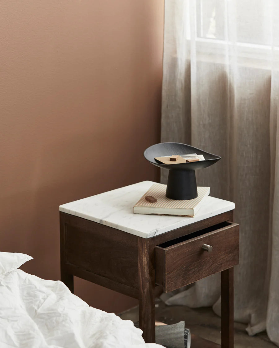Bille-nattduksbord från Nordal är tillverkat av mangoträ med en elegant marmorskiva. Bille har en praktisk låda för förvaring, med ett litet metallhandtag i bronsfinish. Använd Bille i ditt sovrum eller som ett sidobord för att tillföra både funktion och stil till rummet. Den sofistikerade kombinationen av trä och marmor ger ett tidlöst och exklusivt intryck.