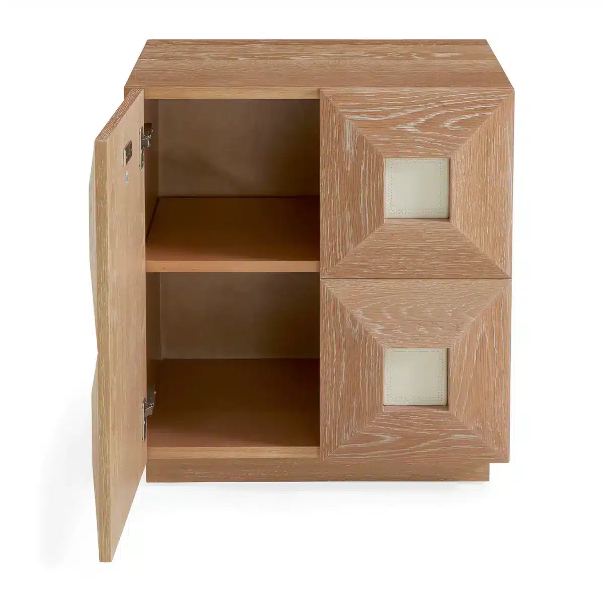 Tillverkad av stålborstad och kalkad massiv ek och kantad med ett dimensionellt mönster som fått inlägg i elfenbensläder detaljerade med tidlösa toppsydda kanter. Otto i ek erbjuder gott om förvaringsutrymme. En mycket exklusiv och läcker inredningsdetalj.
