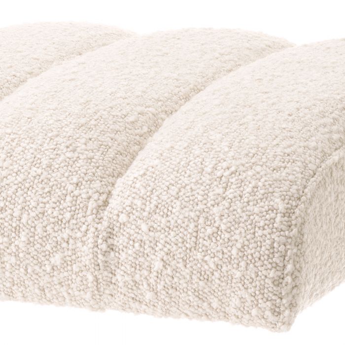 Ge ditt sovrum eller vardagsrum en modern touch med pallen McGuire. Denna eleganta pall erbjuder en extra sittplats med en unik design. Ramen i borstad mässing har ett ben på ena sidan och två på den andra, vilket stöder en sits som är täckt av ett rikt tyg i off white Bouclé och försedd med kanalsömmar.