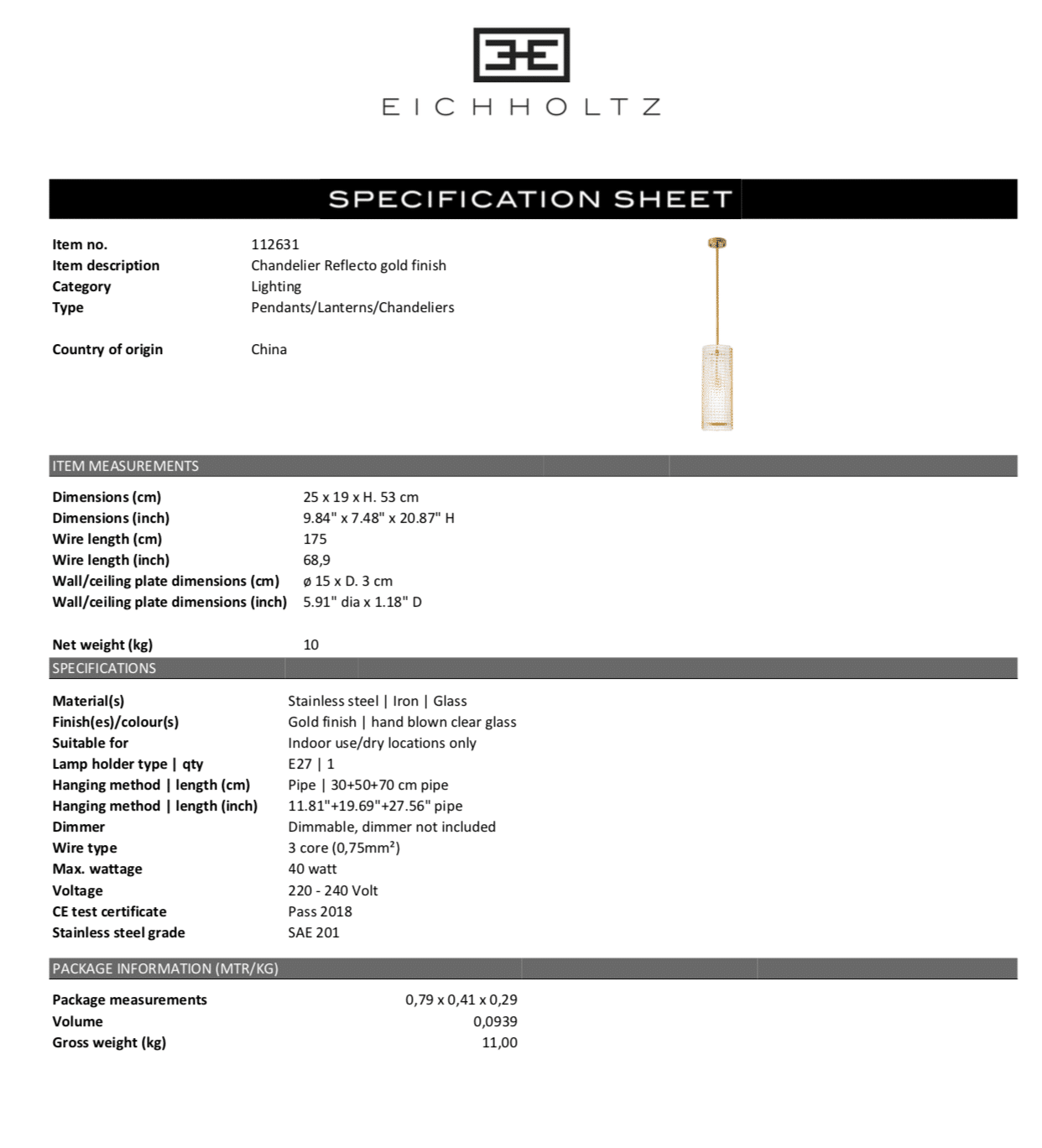 Chandelier Reflecto från Eichholtz. Stilig och snygg taklampa med handblåst glas.