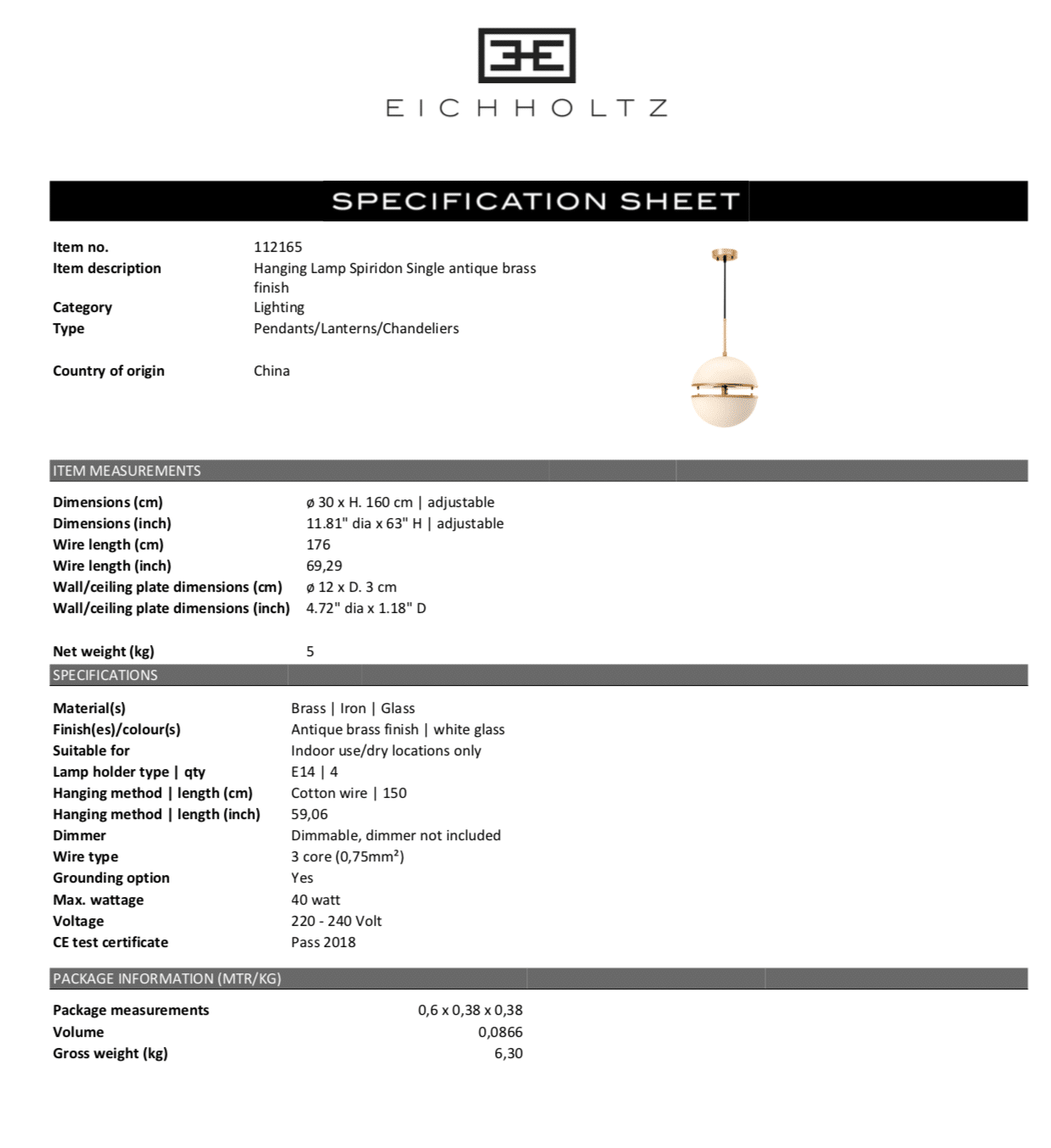 Hanging Lamp Spiridon. Läcker och designrik taklampa från Eichholtz.