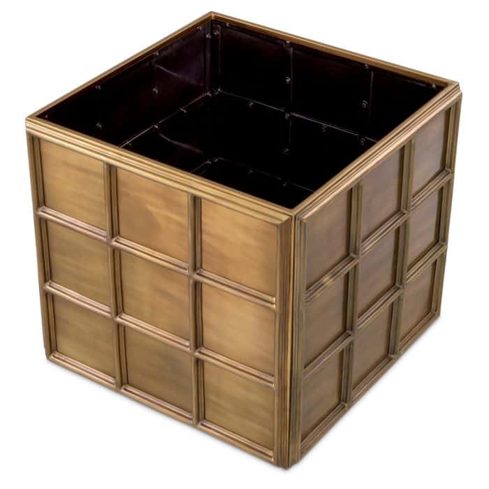 Med sin antika mässingsfinish utstrålar denna stora kruka och urna en känsla av klassisk elegans som passar perfekt in i olika inredningsstilar. Den fyrkantiga formen ger den en modern och strukturerad look som kompletteras av den subtila glansen från den antika bronsfärgen.