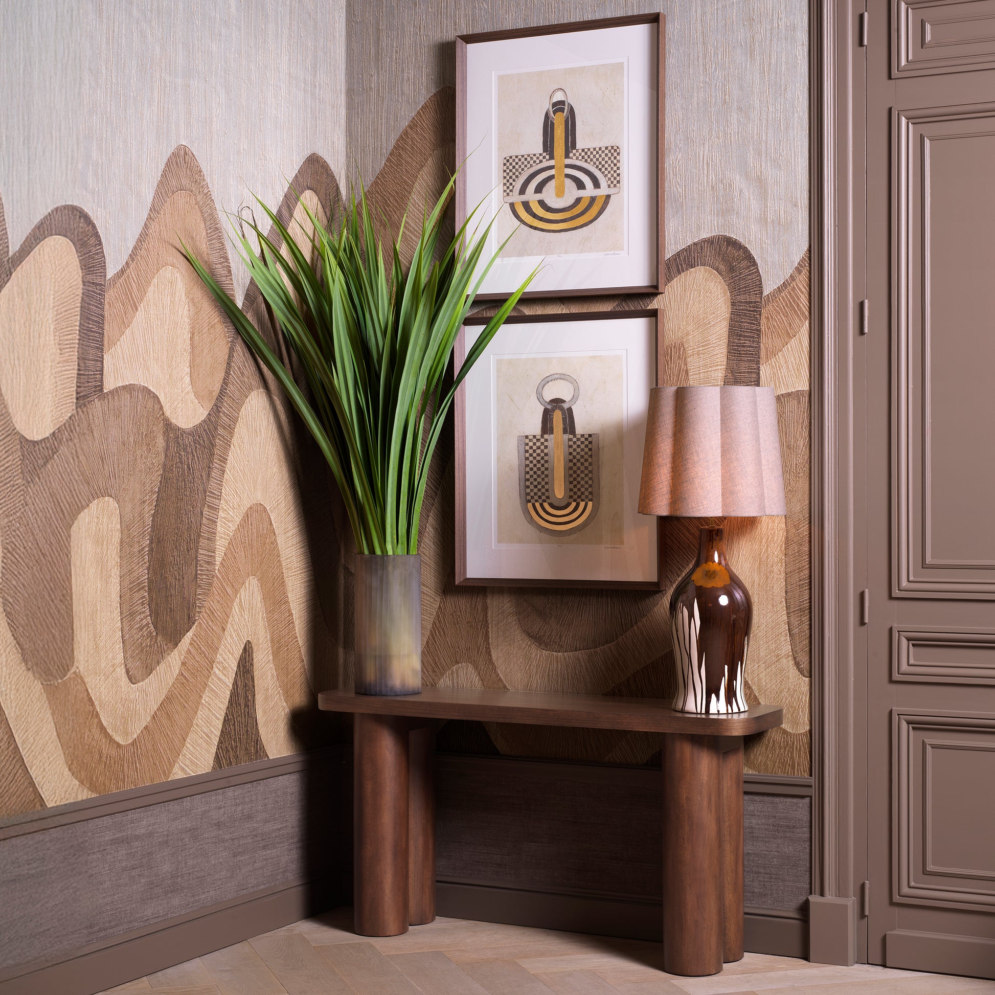 Förlora dig i elegansen hos "Print Objet d'Art" av Vanna Lam från Eichholtz. Detta set i begränsad upplaga består av två konstverk med intrikata, abstrakta motiv – stilfullt inramade i grått trä och skyddade av klart glas. Varje verk är handsignerat och numrerat, vilket gör dem till exklusiva samlarobjekt. En raffinerad design som tillför karaktär och konstnärlig finess till alla typer av inredningar.