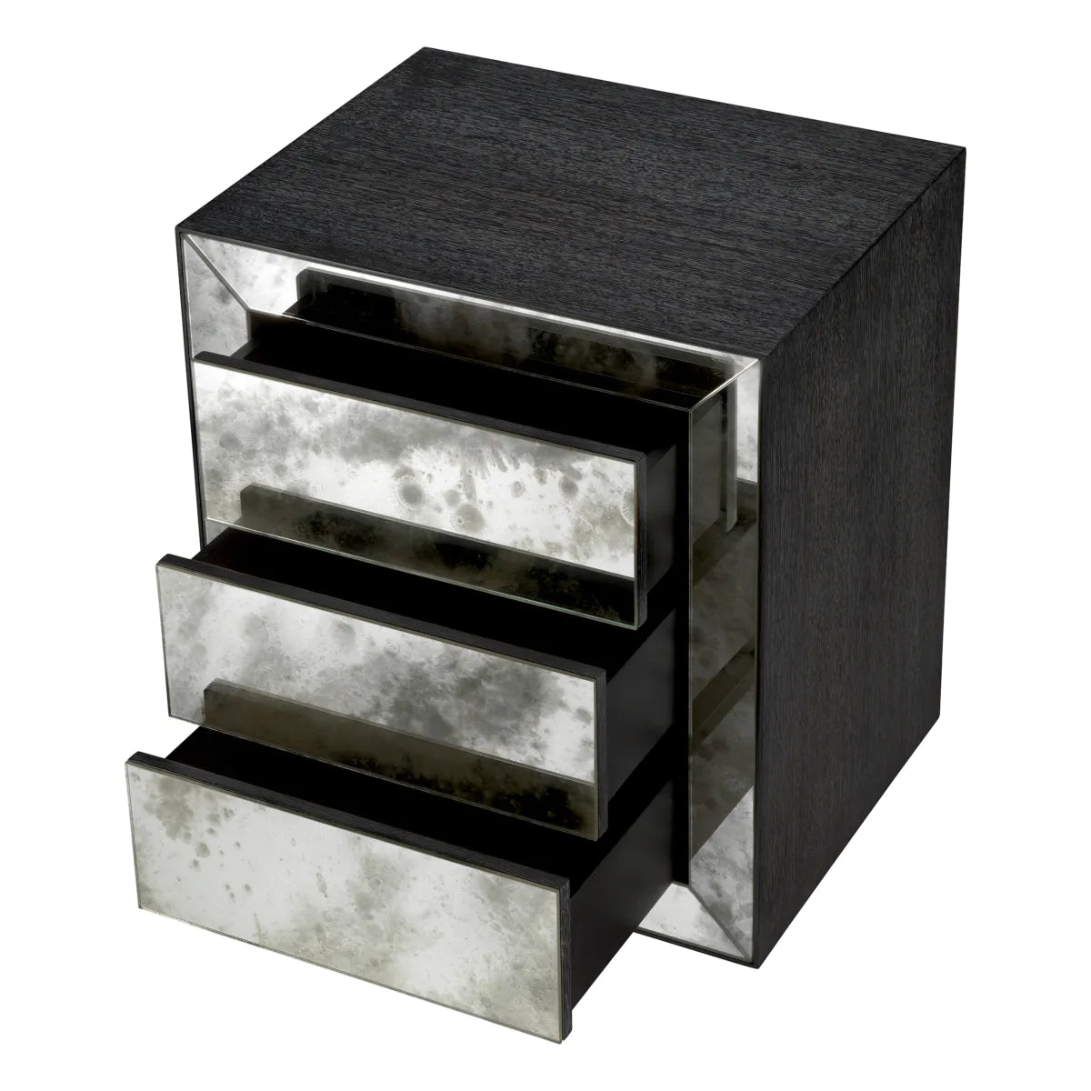 Upptäck den förfinade charmen hos Eichholtz Bogart sängbord, ett exklusivt nattduksbord som kombinerar en faner i kolgrå ek med en finish i antikspegelglas. Detta lyxiga sidobord utstrålar modern elegans, där de rena linjerna och den fängslande visuella kontrasten lyfter vilken inredning som helst.