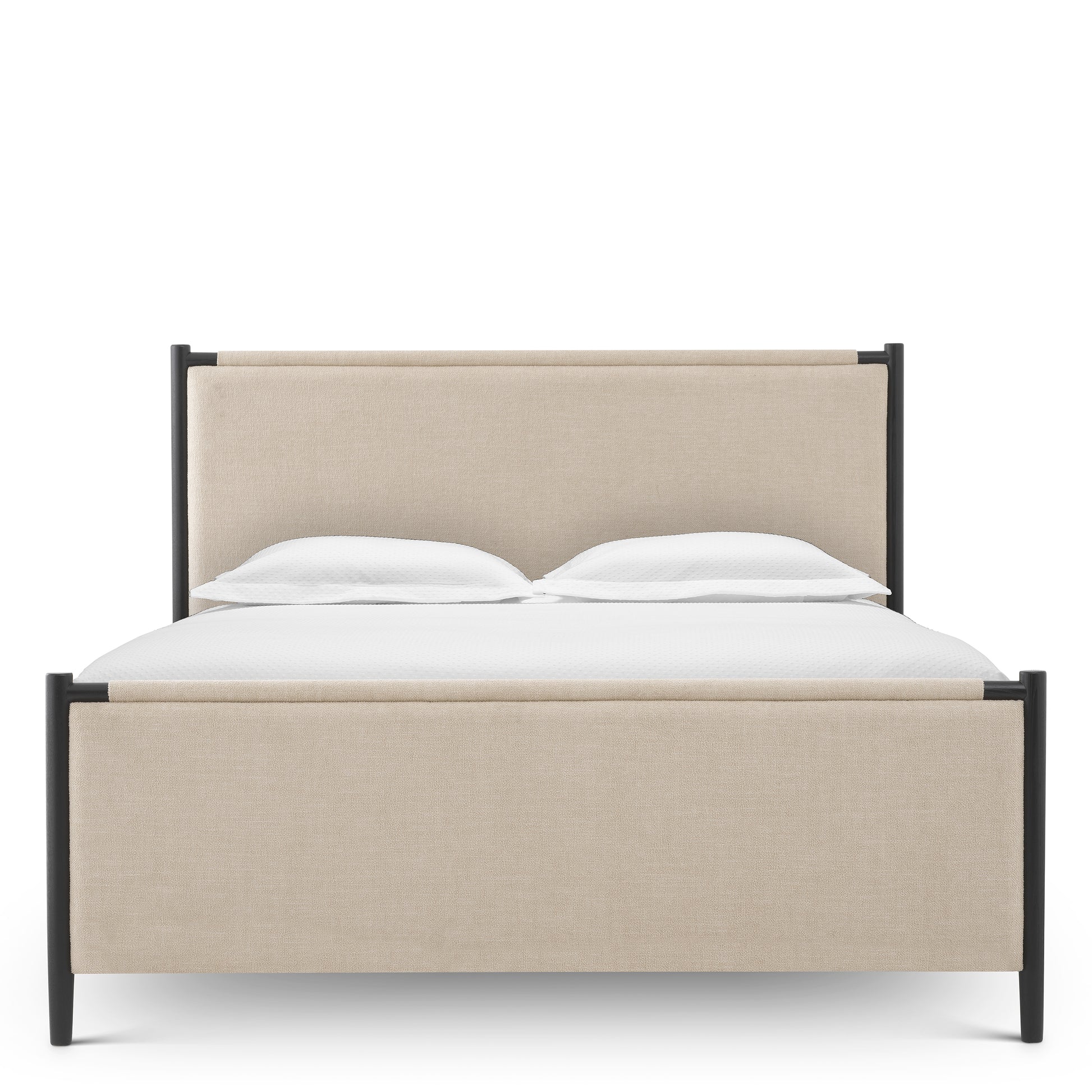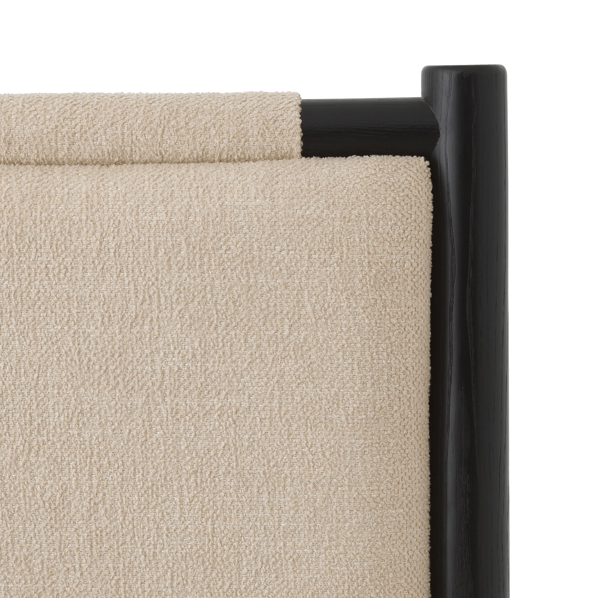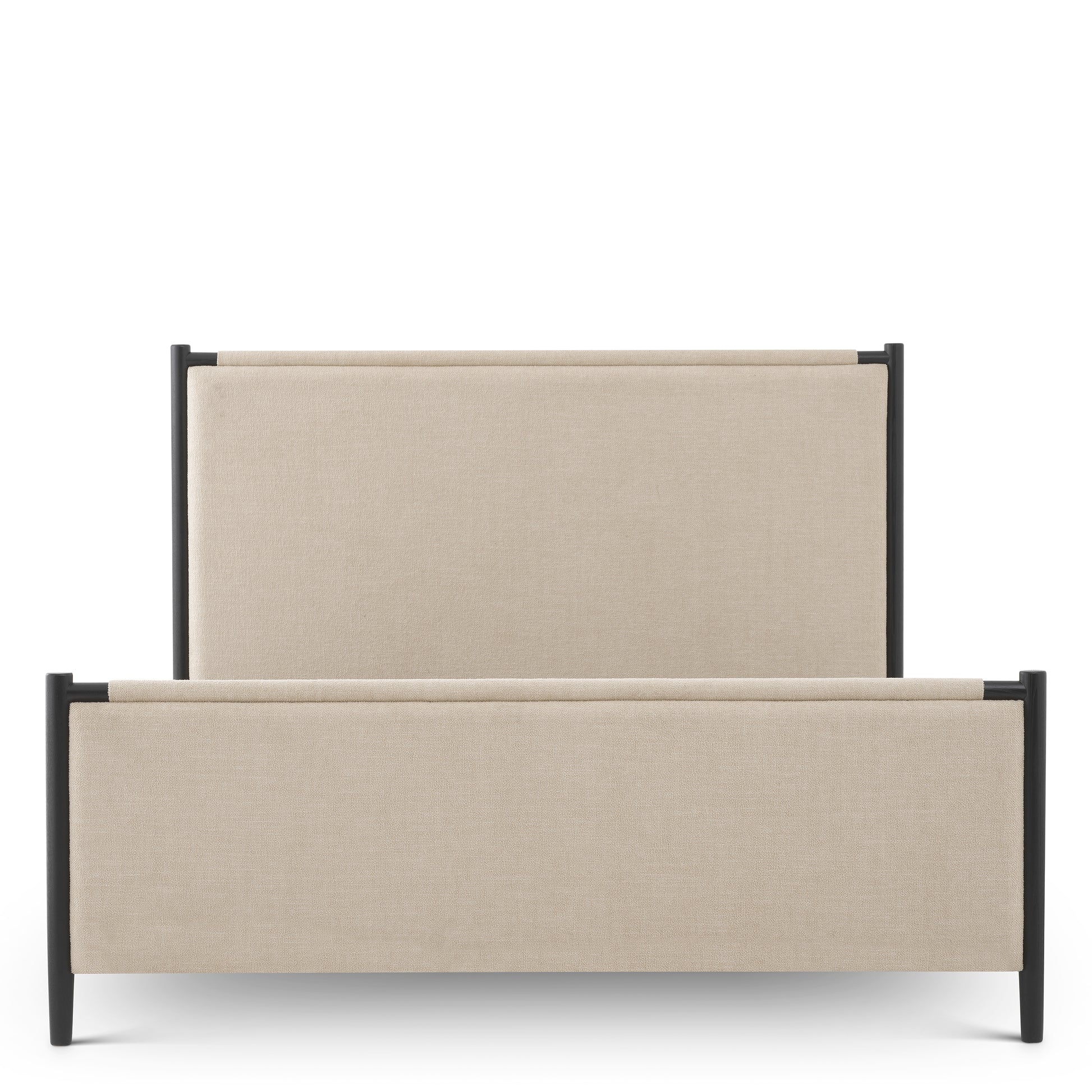 Sängramen Bellingham från Eichholtz kombinerar stram form med en mjuk, exklusiv känsla och blir ett elegant blickfång i sovrummet. Den svarta finishen ger ett modernt och sofistikerat uttryck som balanseras vackert av den klädda sänggaveln i Renato ecru återvunnet tyg.
