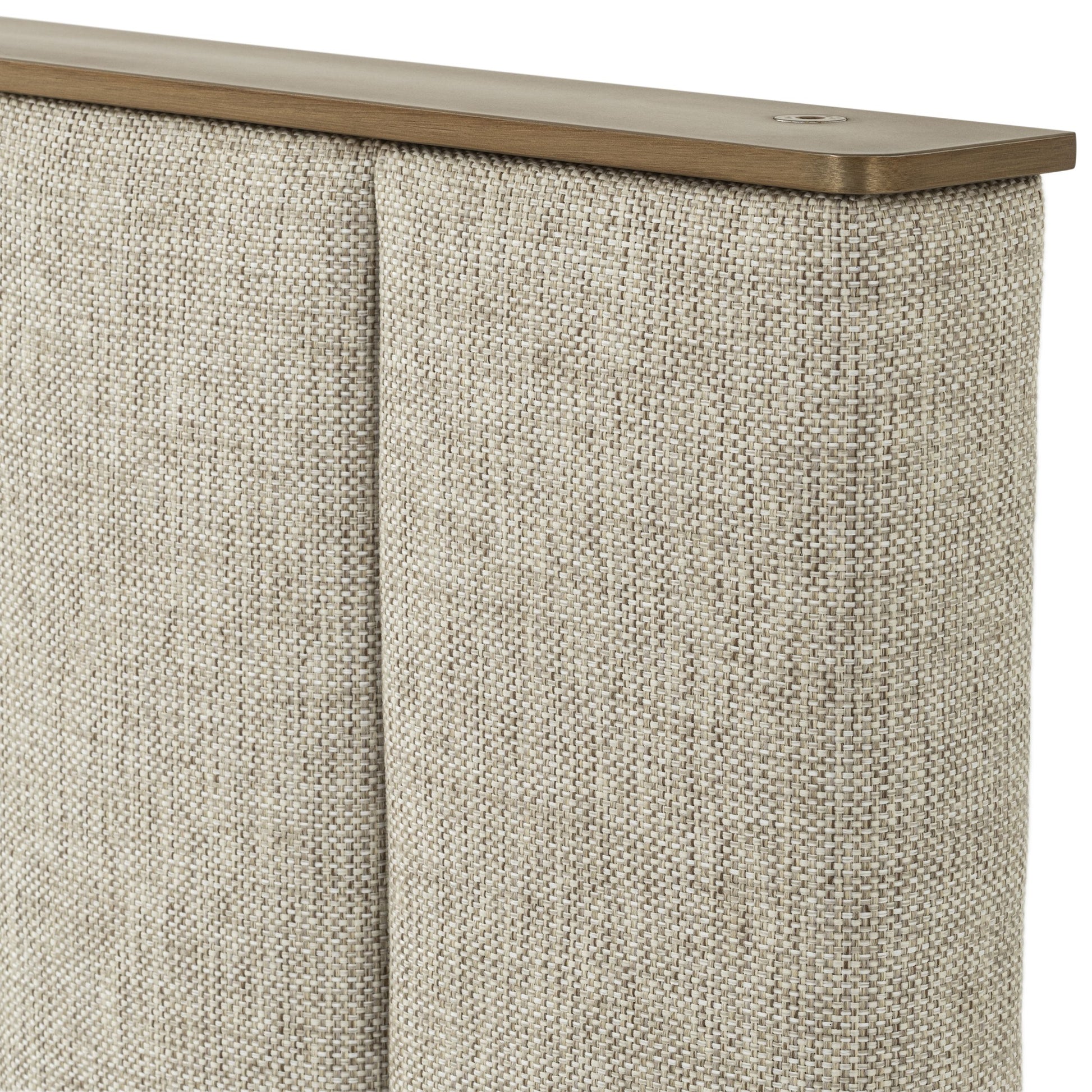 Tyg härligt naturfärgad känsla och läckra inslag av kolgrå fötter och borstad mässingsfinish ger denna inredningsdetalj ditt sovrum ett rejält lyft.