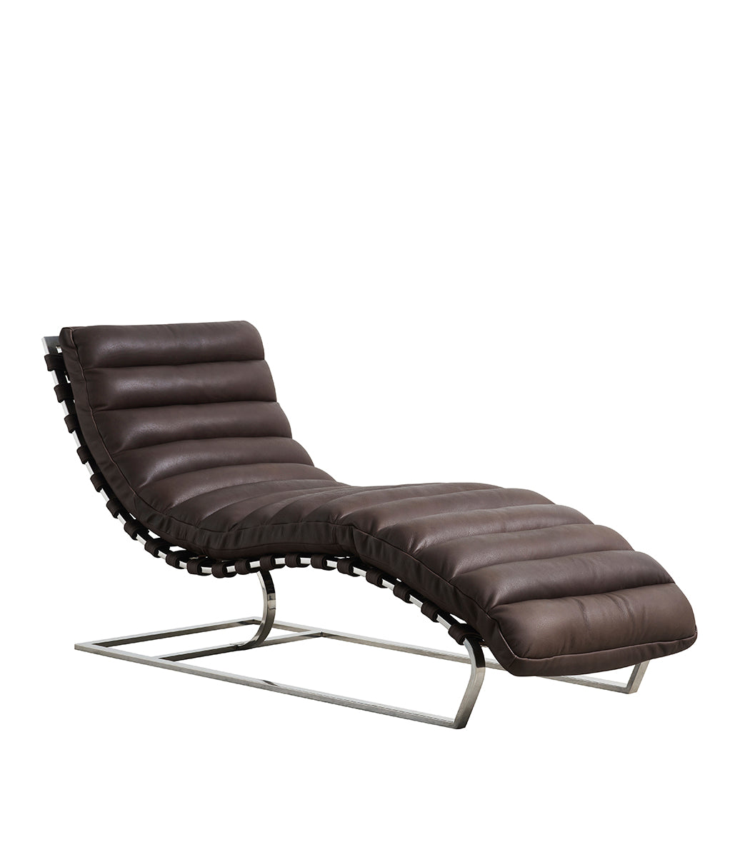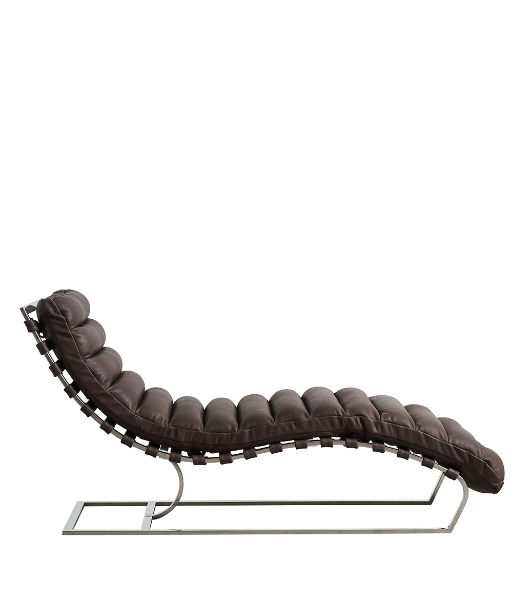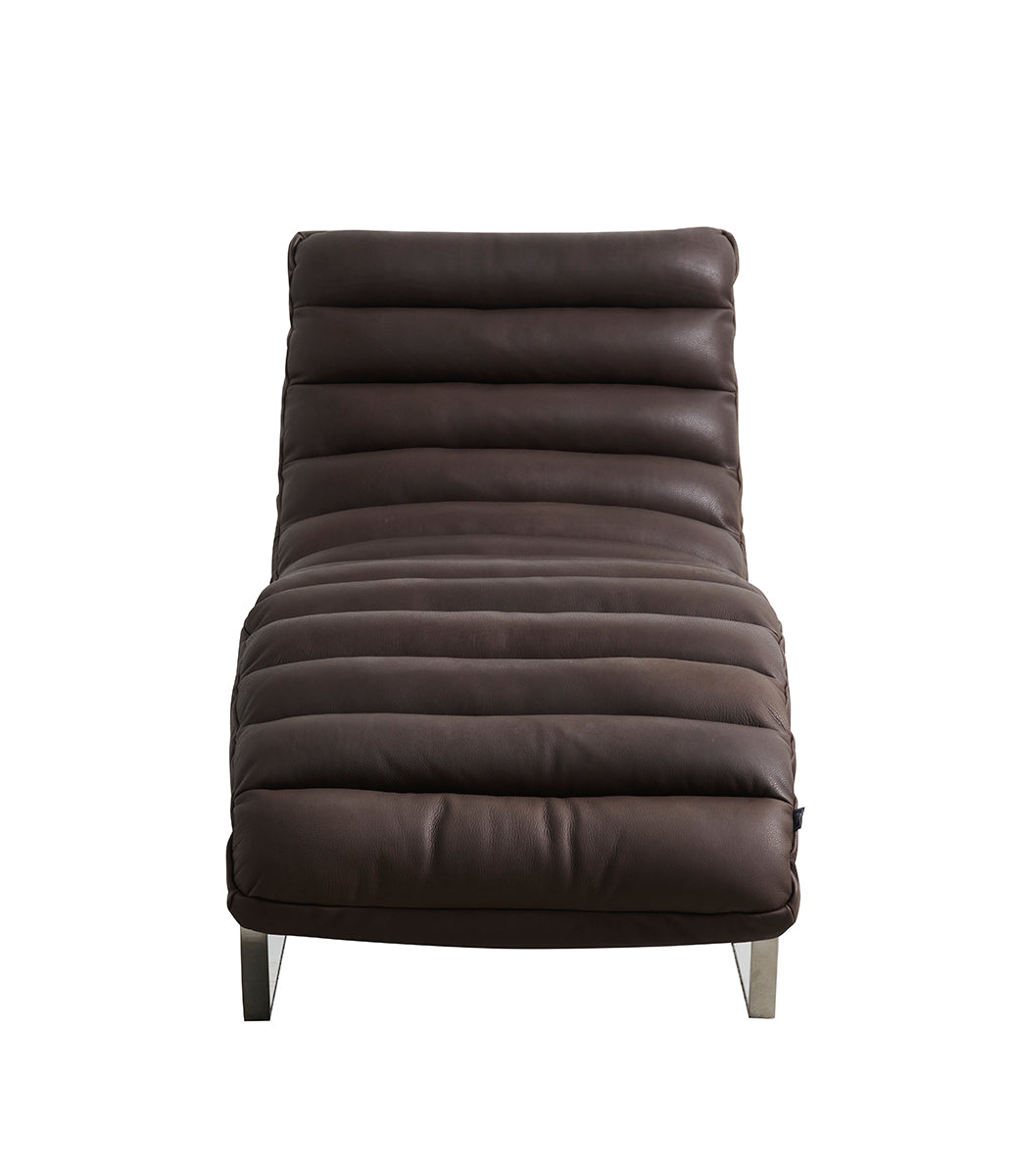 Cliff schäslong i skinn från Artwood är en elegant möbel i mörkbrunt läder med formgjutet säte och distinkta horisontella sömmar som tillför djup och karaktär. Den generöst vadderade sitsen ger hög komfort och följsamt stöd för hela kroppen, vilket gör den idealisk för avslappning i vardagsrum, lounge eller kontor. Klädd i 100 % exklusivt läder i färgen Espresso får schäslongen en sofistikerad känsla som åldras vackert över tid. Underredet i borstad metall skapar en stilren kontrast mot det mjuka lädret och förstärker möbelns moderna, arkitektoniska uttryck.