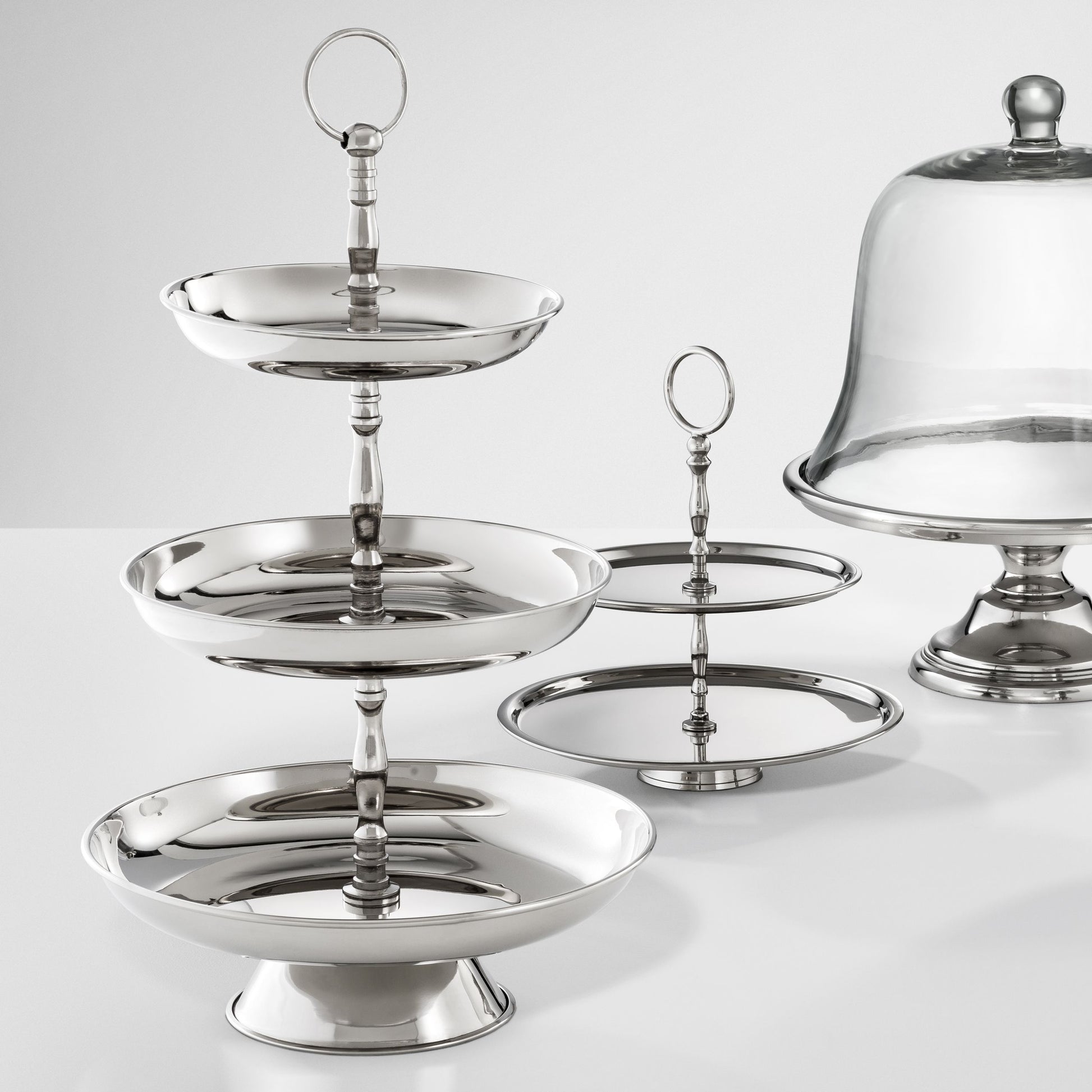 Elegant och mycket vackert kakfat i tre nivåer i härligaste nickelfinish. Praktiskt och sticker lite ut med sina djupskålade avsatser.