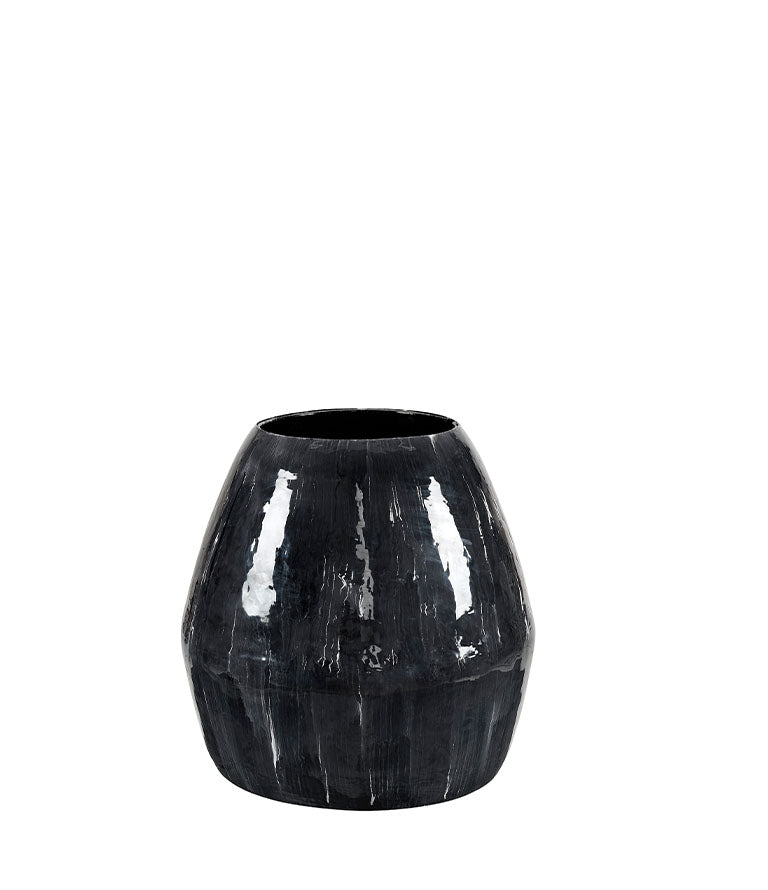 Unikt sidobord från Artwood som kombinerar stil och funktion på ett unikt sätt. Tillverkat av handemaljerad metall med en fint glaserad yta, erbjuder detta bord en exklusiv och sofistikerad känsla till din inredning. Tack vare den gedigna hantverksprocessen är varje exemplar unikt i sitt utseende, vilket gör det till ett personligt tillskott i ditt hem. Detta sidobord är inte bara dekorativt utan också mångsidigt – det kan enkelt användas som en stor kruka eller förvaring, vilket gör det till en praktisk och estetisk lösning för olika rum.
