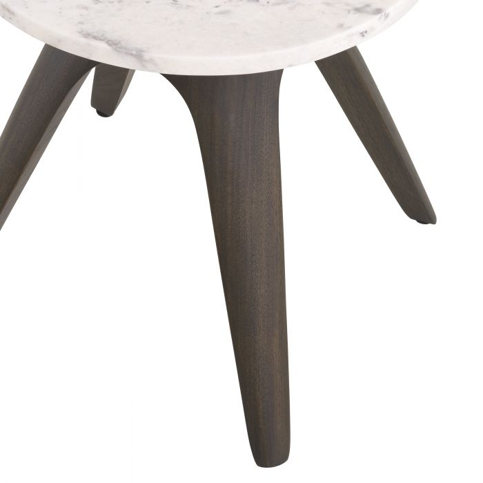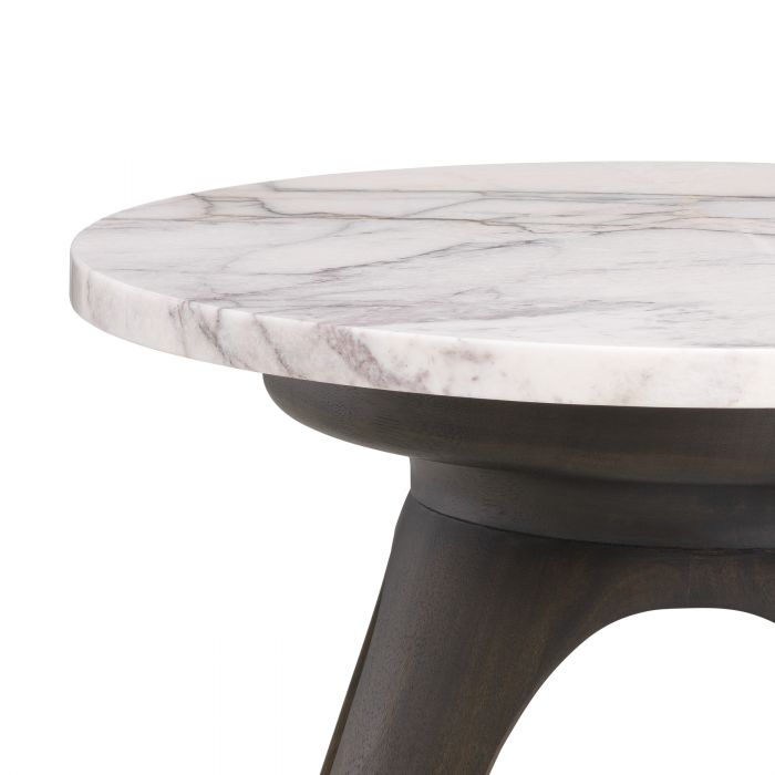 Sidobordet Borre har en smart design med välbalanserad minimalistisk dragningskraft för att det ska kunna smälta sömlöst med en mängd olika interiörstilar och färgscheman. Den har en bas i mockafinish med avsmalnande ben och en rund bordsskiva av italiensk bianco lila-marmor och är lämplig för både bostäder och kommersiella utrymmen.