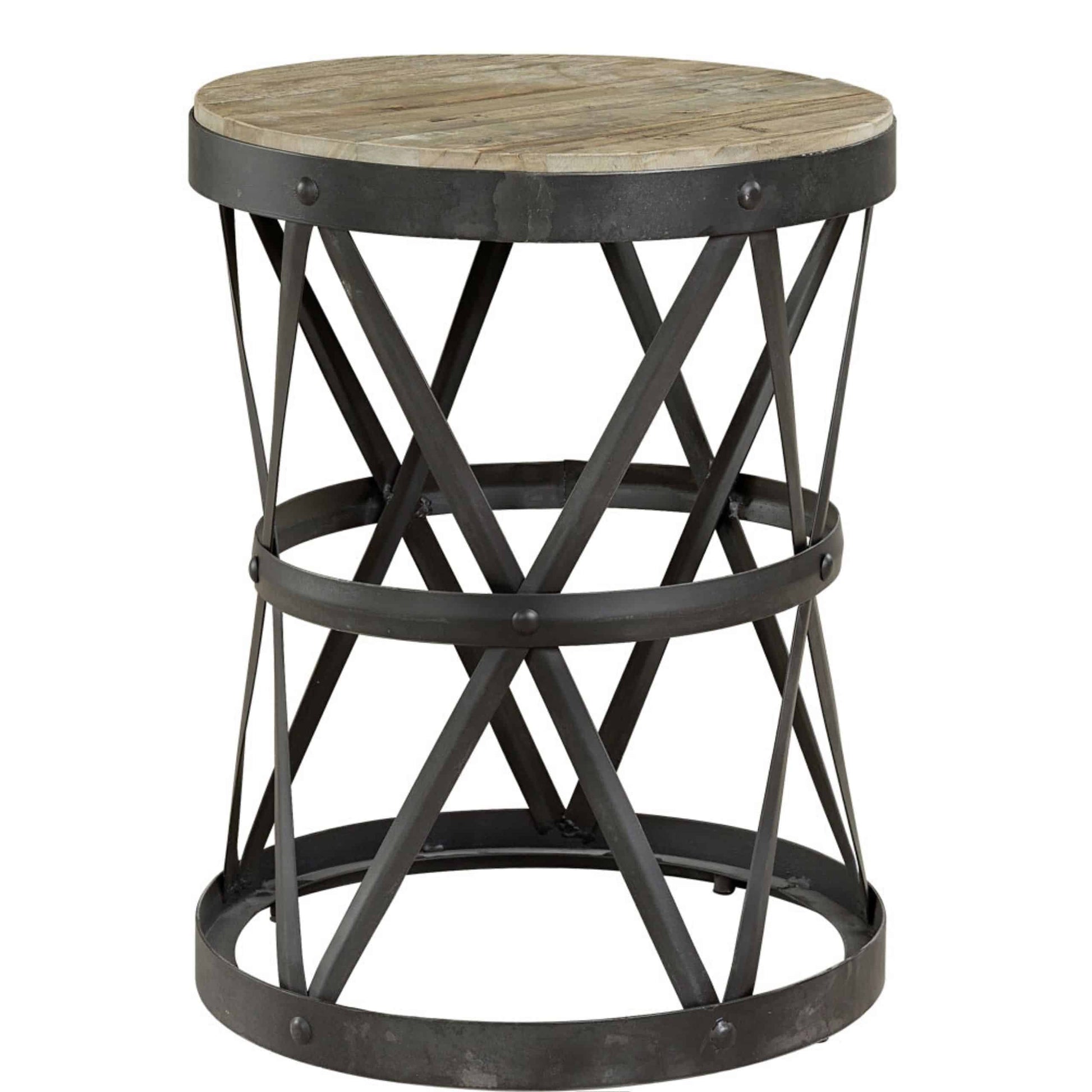 Ett härligt och spännande designat sidobord i rustikt almträ och underrede i svartlackerat järn. En fin inredningsdetalj.
