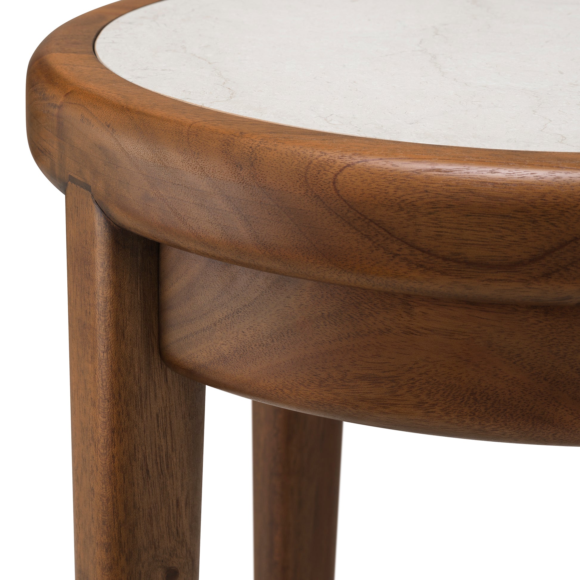 Sidobord Hensley Round från Eichholtz är en elegant och tidlös möbel som tillför mjukhet och exklusivitet till din inredning. Med sin runda silhuett och harmoniska materialkombination skapas en sofistikerad balans mellan form och funktion. Stommen är tillverkad i massivt mahognyträ med en varm karamellfärgad finish som framhäver träets naturliga struktur och djup. Den släta bordsskivan i beige marmor ger ett exklusivt och hållbart uttryck, samtidigt som den skapar en vacker kontrast mot träets varma ton.