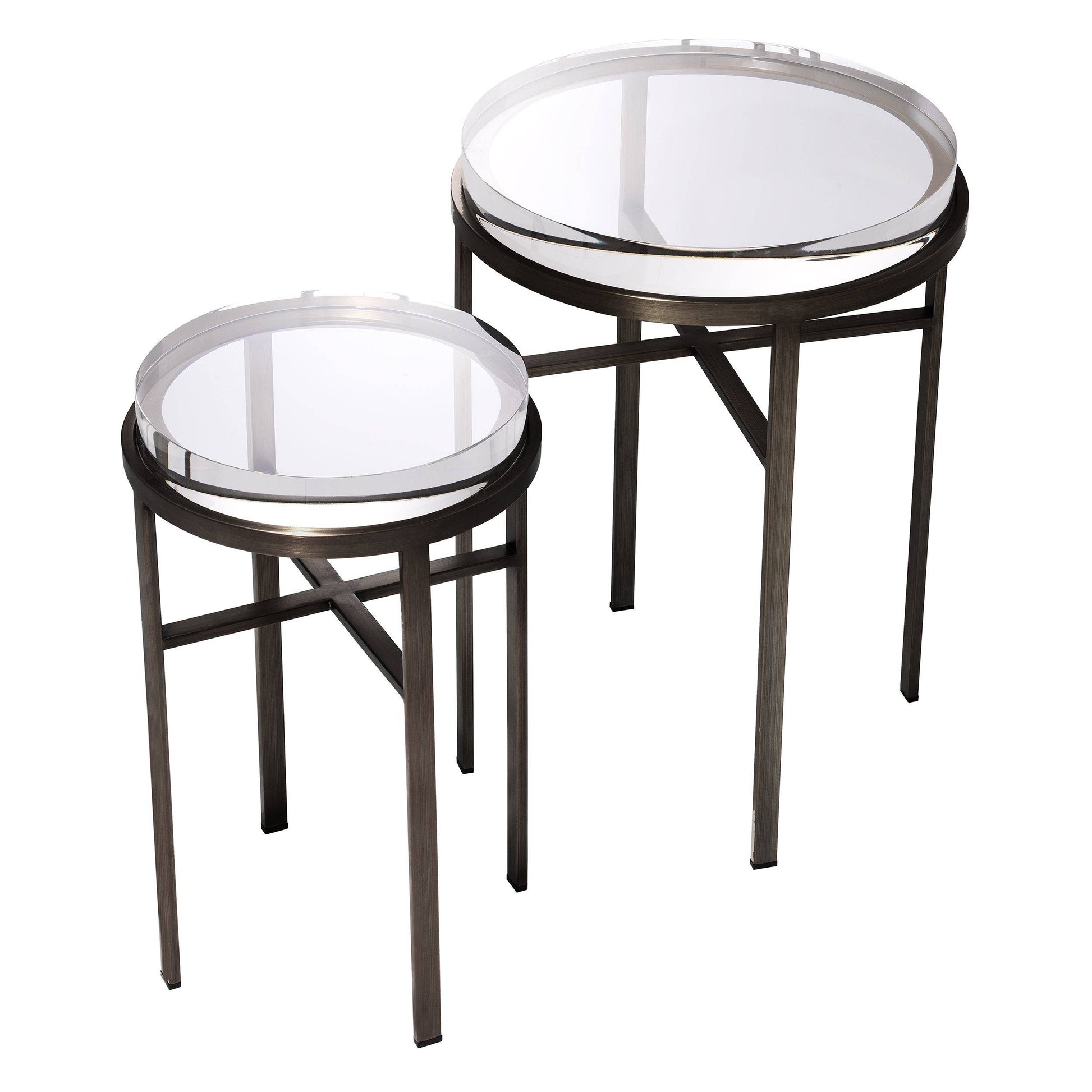 Side Table Hoxton från Eichholtz är ett sidobord i set om två med otrolig exklusiv känsla. Läcker design och med otrolig hantverksmässig professionalism har duktiga glasblåsare lyckats tillverka ett mycket tjockt och klart glas som toppskiva. Väldigt elegant och massivt.