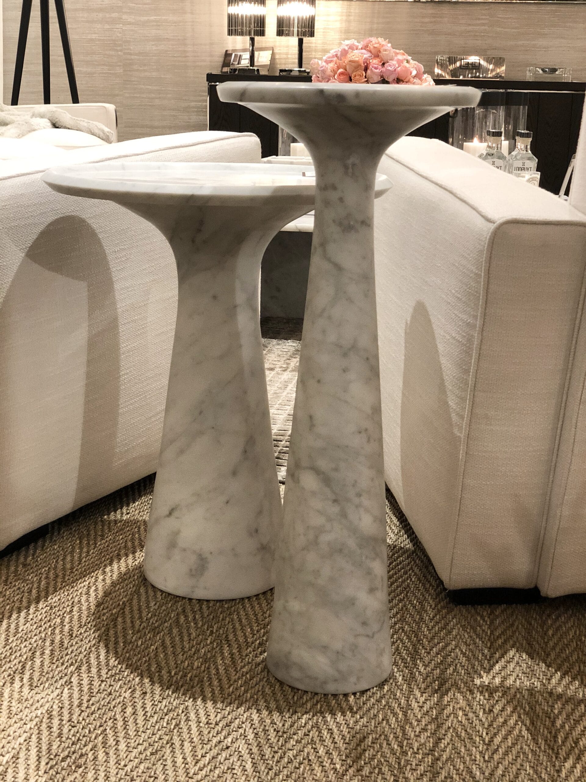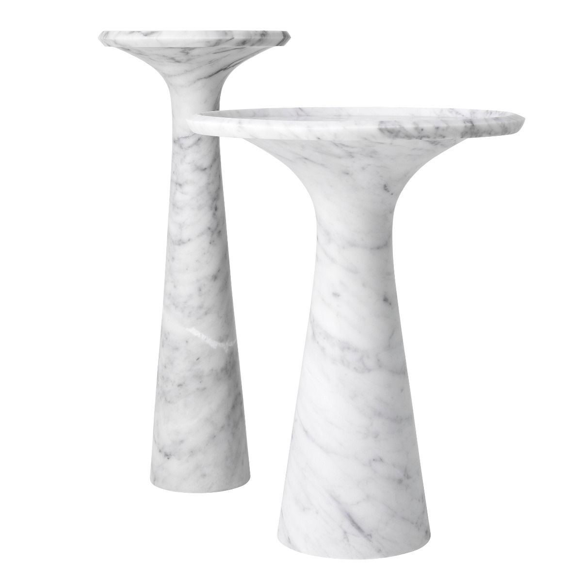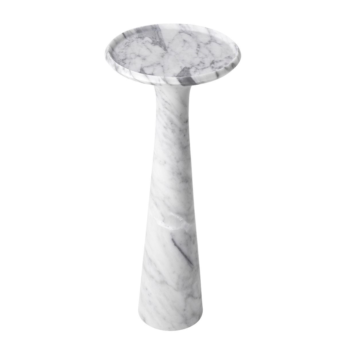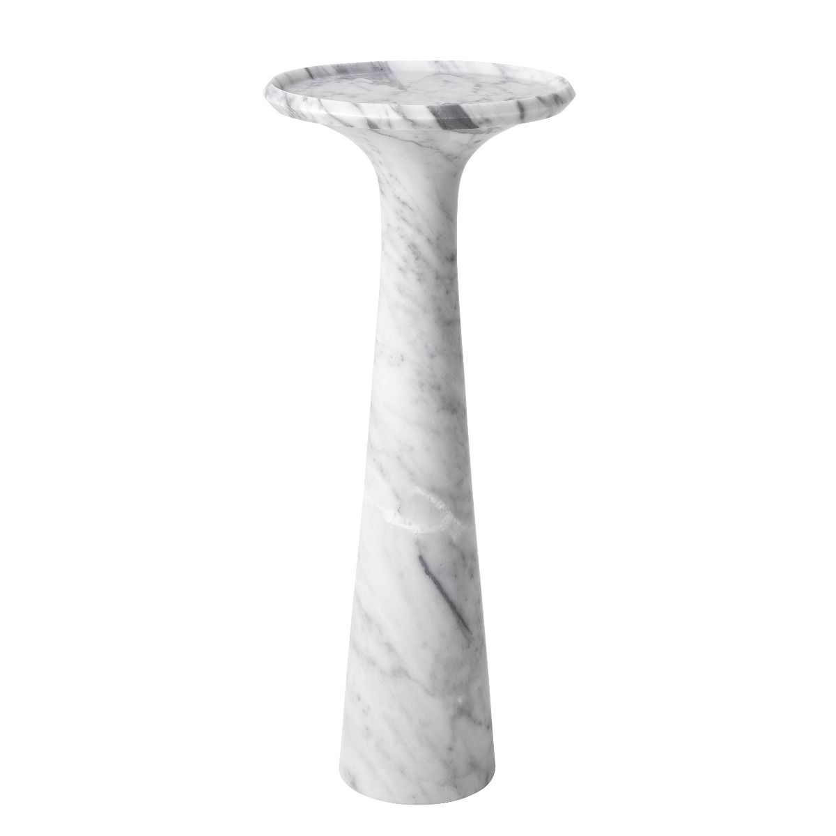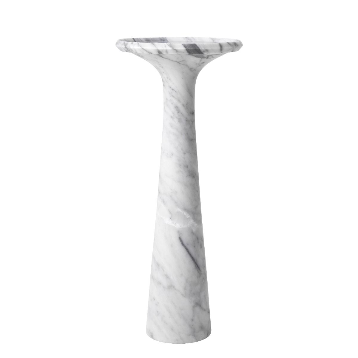 Ett mycket elegant och exklusivt runt bord där marmorn är huggen i ett stycke, d.v.s. det finns inga skarvar. Mycket läcker design och iögonfallande sidobord som lätt höjer inredningen några steg. Ståtlig i sig själv eller kombineras med Sidobord Pompano Low för ännu mer effekt.