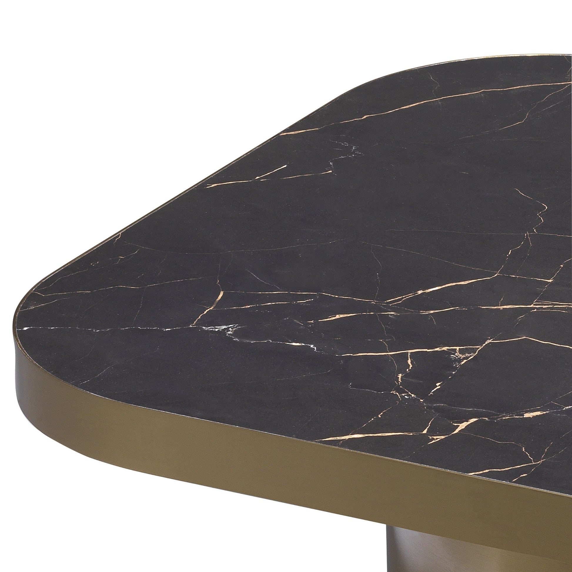 Sidobord Proximity från Eichholtz är ett exklusivt och lyxigt sidobord i borstad mässingsfinish och med en toppskiva i keramik med svart marmorlook vilket gör det både hållbart och otroligt snyggt. Underbart tillskott till inredningen med en vacker blombukett eller bordslampa på.