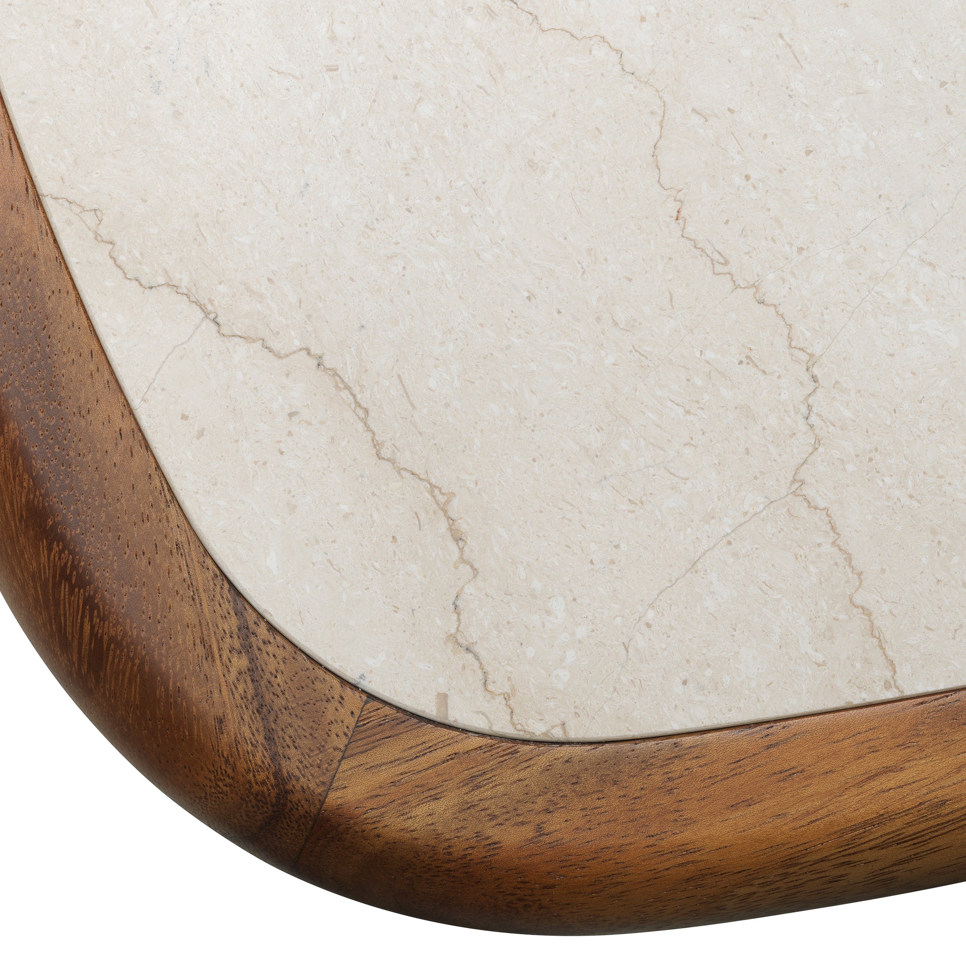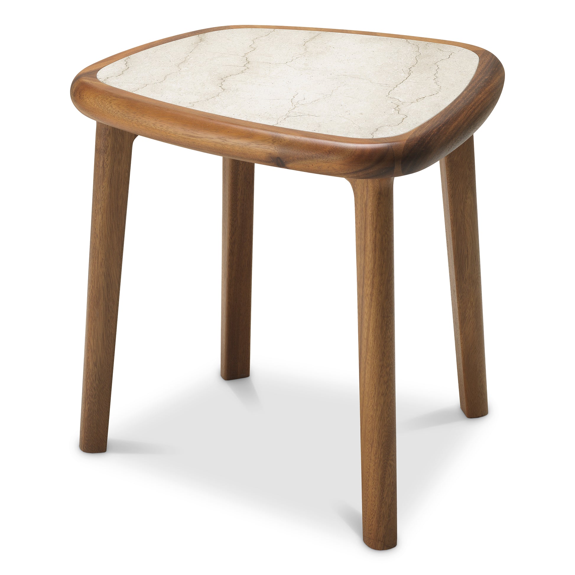 Sidobord Wilma från Eichholtz har en slät beige marmorskiva som utstrålar lugn värme, kompletterad av en bas i solitt mahognyträ med caramel-finish. Marmorns naturliga ådring ger subtil variation och skapar ett tidlöst tillbehör som kombinerar elegant sofistikation med en förfinad känsla, perfekt för en lyxig och stilfull miljö.