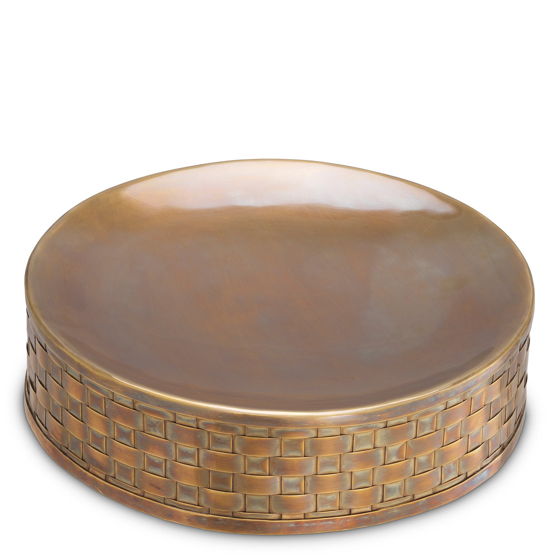 Skål Lausanne från Eichholtz har ett utförande i vintage-brass och består av sammanflätade remsor som skapar en iögonfallande textur. Denna eleganta detalj kombinerar värme med modern charm och passar perfekt i miljöer som uppskattar subtil och sofistikerad lyx.