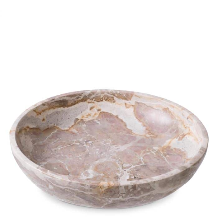 Med sin  moderna form är skål Revolt mer än bara en funktionell skål – den är också ett konstverk som kommer att skapa ett stilfullt uttalande var den än placeras. Den tillverkades för hand med stor noggrannhet i brunaktig marmor som tillför en touch av lyx och elegans till dess utseende.