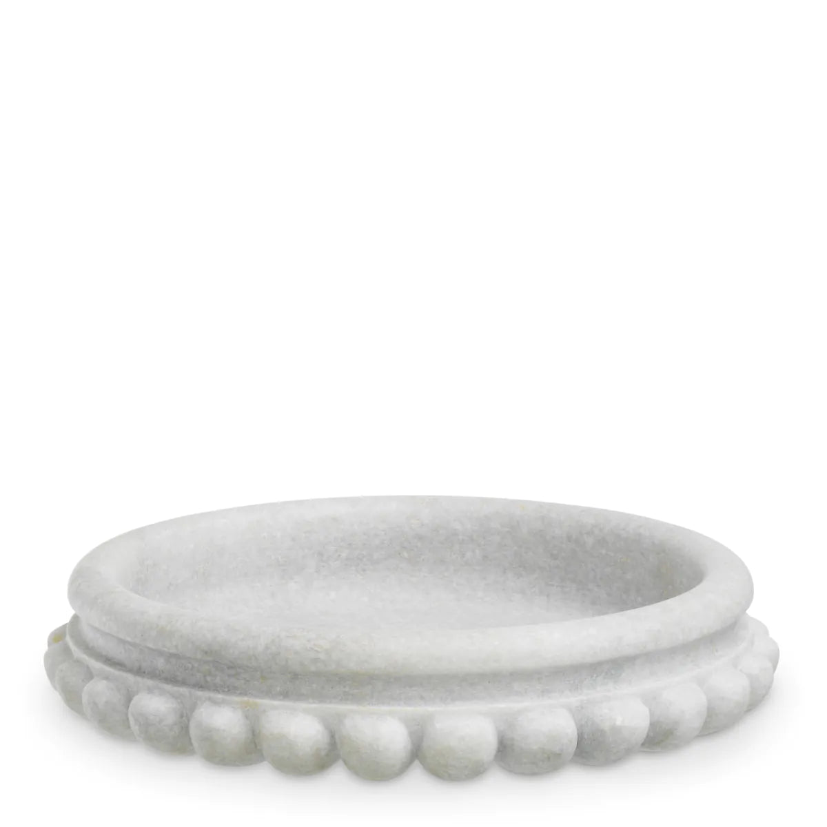Låt oss presentera Eichholtz Bowl Yerba, en fantastisk dekorativ skål som utstrålar tidlös elegans. Tillverkad i vit marmor, pryds denna skål av ett intrikat kedjemönster som ger en extra dimension av sofistikering till vilken miljö som helst. Oavsett om den används som ett självständigt blickfång eller som en stilfull förvaringslösning, höjer Bowl Yerba din inredning med sin förfinade charm och oöverträffade hantverk. Den kombinerar funktion med estetik och blir ett uttrycksfullt inslag i både moderna och klassiska hem, vilket gör den till ett perfekt val för den som uppskattar exklusiv design och hög kvalitet.