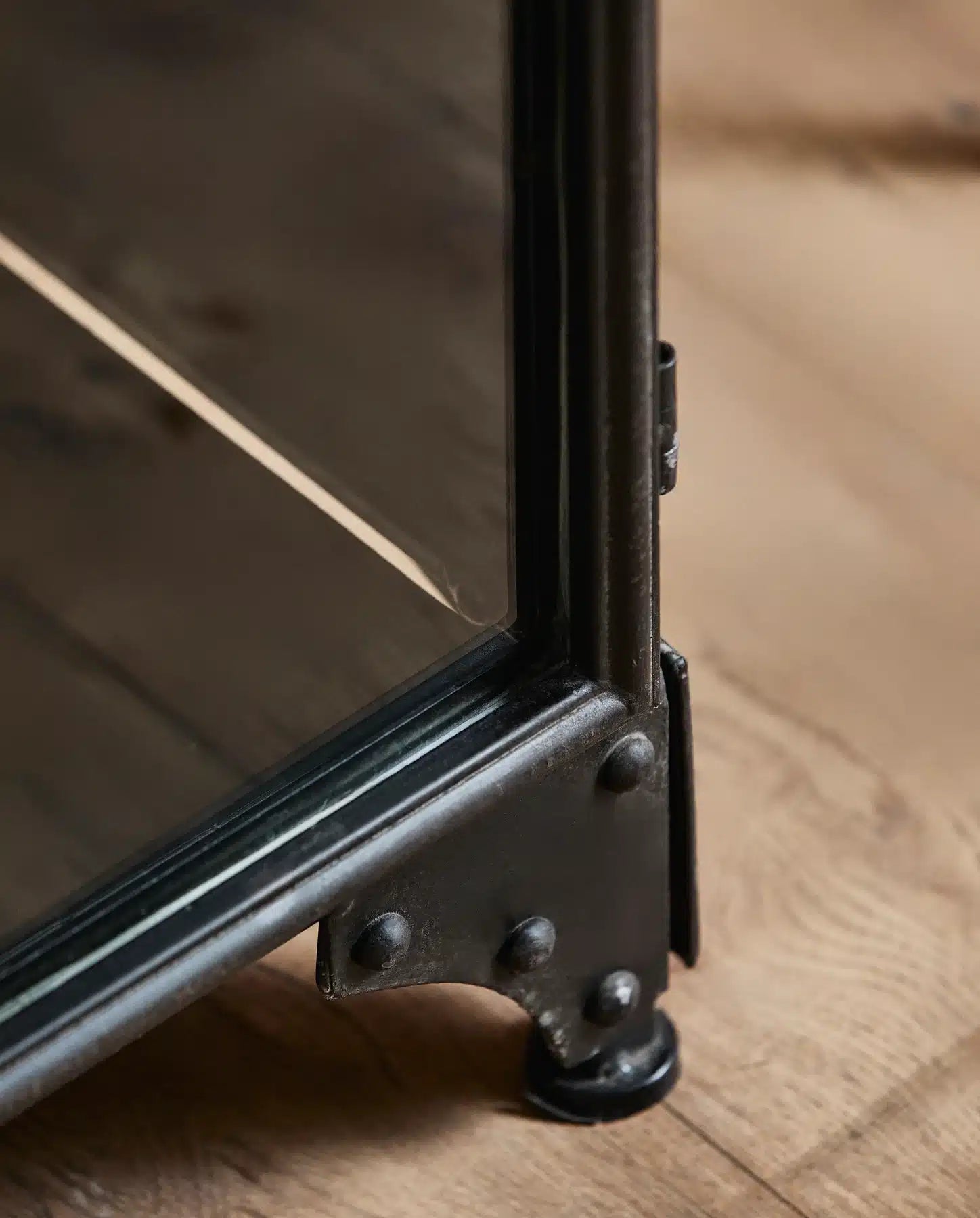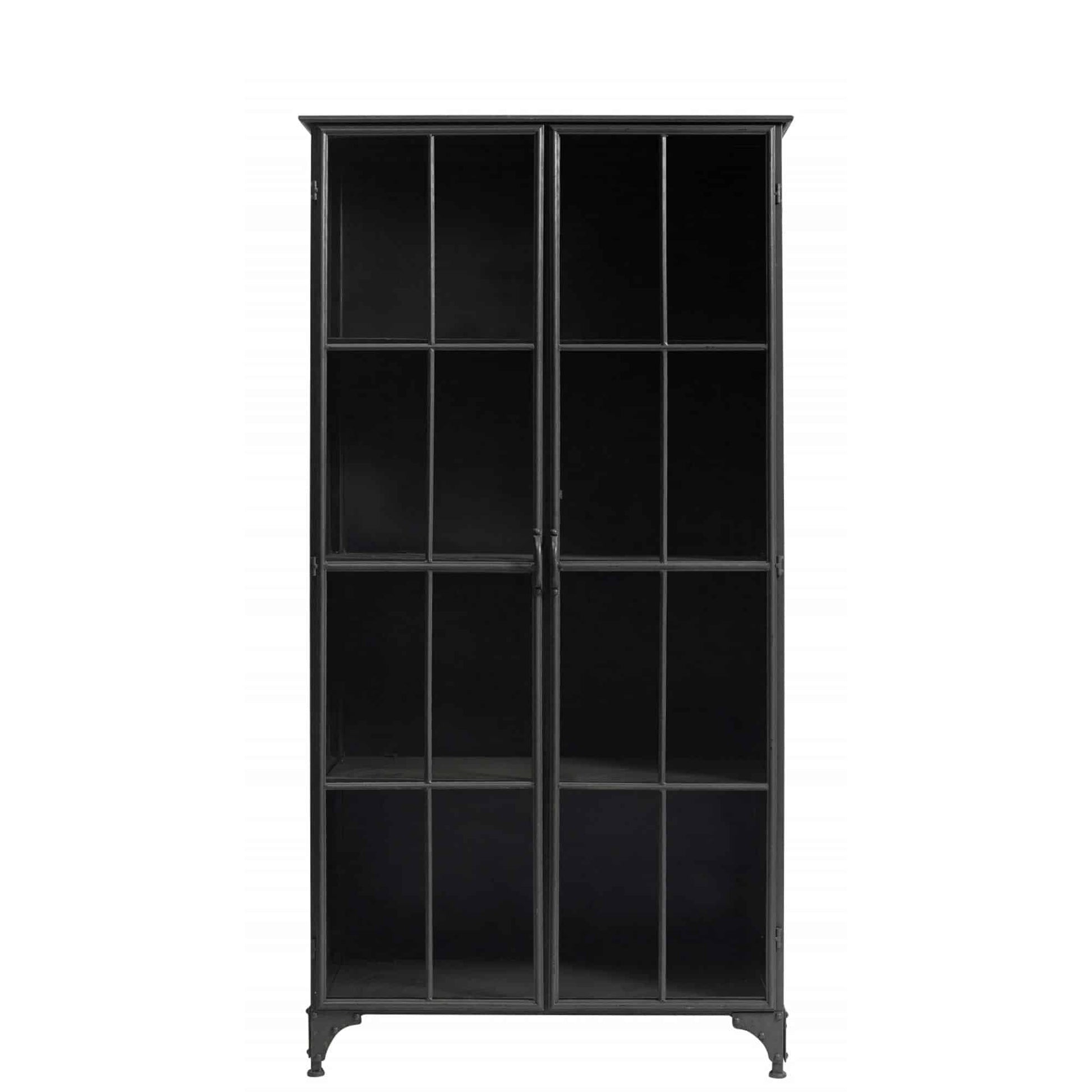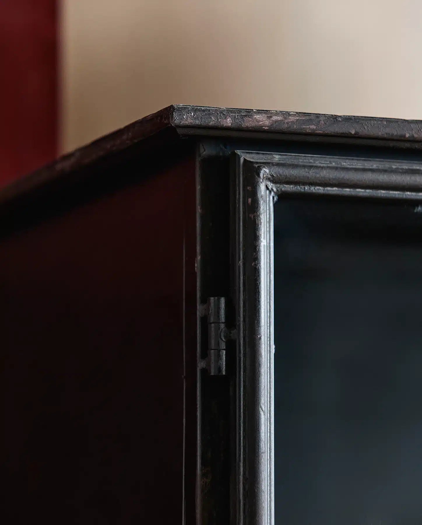 Ett härligt och rustikt vitrinskåp i svartlackerad metall.