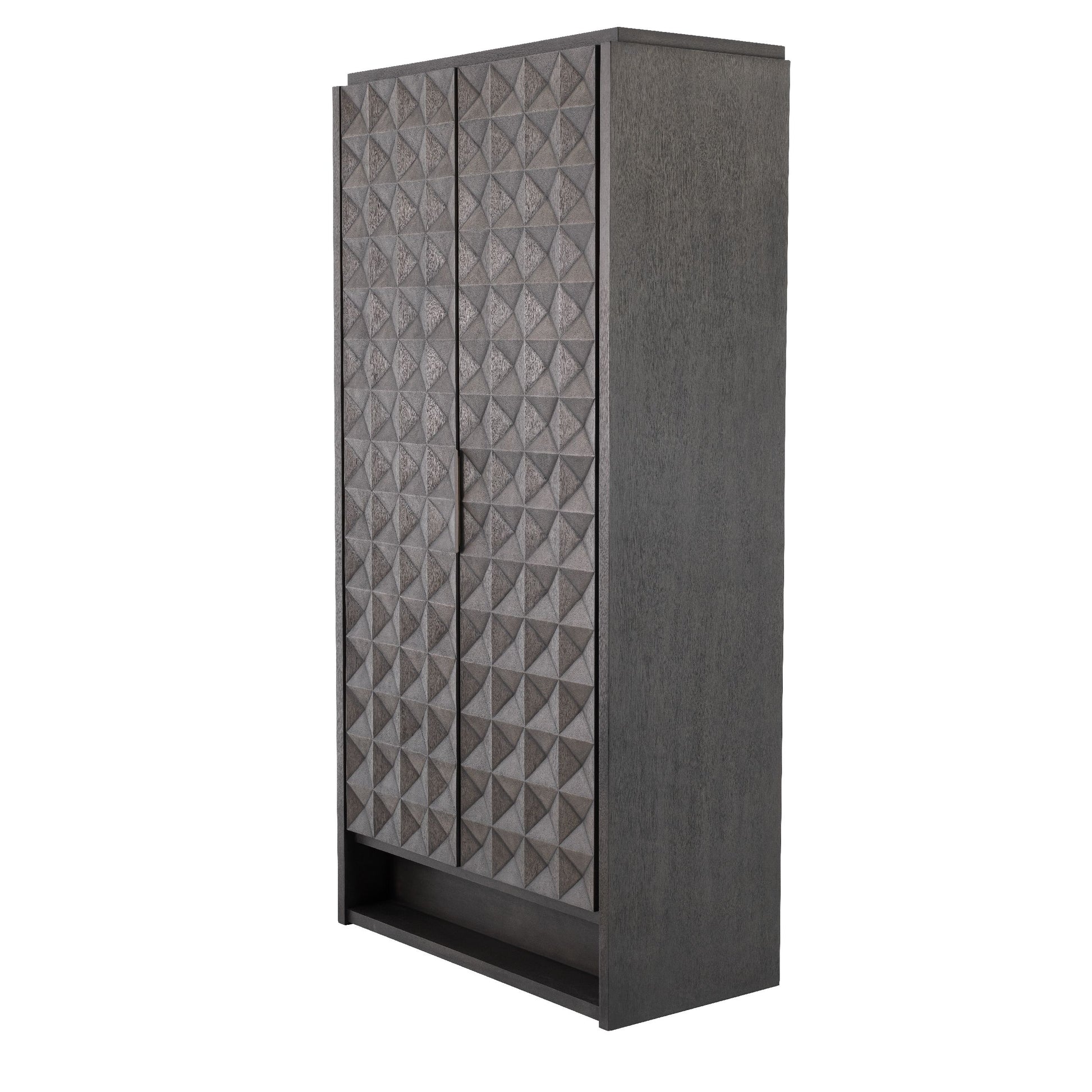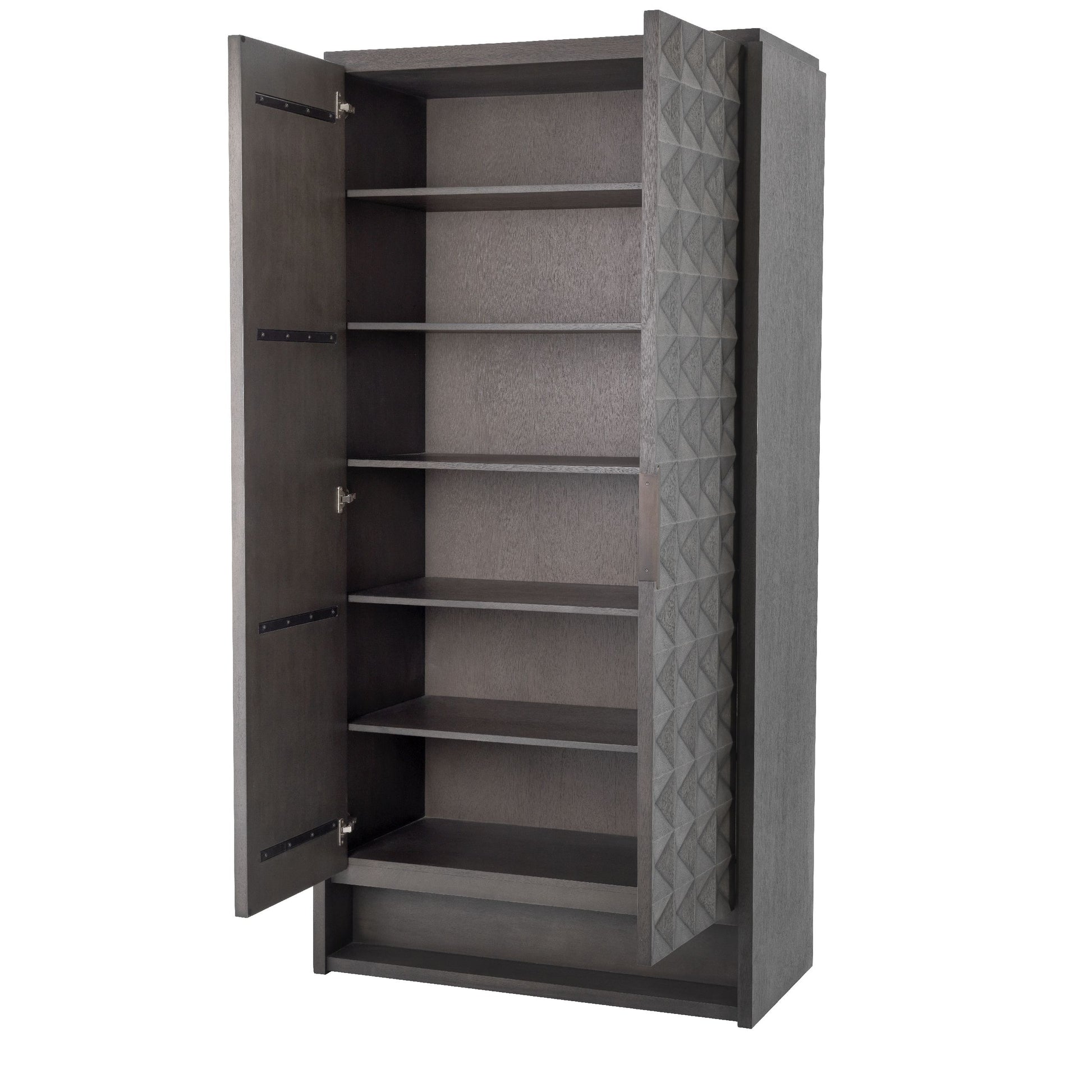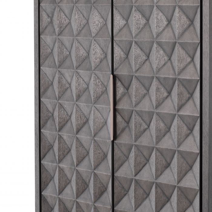 Skåp Jane Mocha från exklusiva Eichholtz är ett mycket gediget och läckert skåp med härlig finish. Med sin vackra, handtillverkade finish och handtag i antik mässingsfinish kommer Jane att ge din interiör ett modernt men ändå tidlöst utseende. Geometriska mönster från massivt merantiträ på dörrpanelerna skapar en fantastisk 3D-effekt som ger en mycket läckert utseende. Perfekt skåp som rymmer massor för sovrum såväl som vardagsrum.