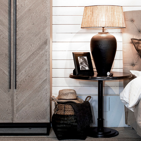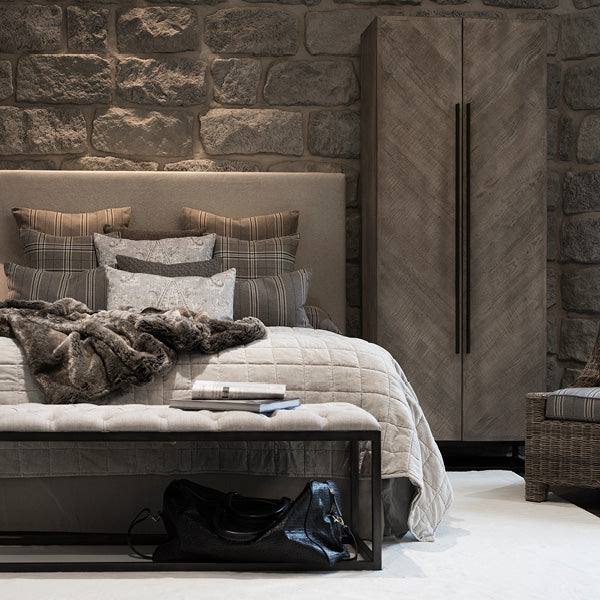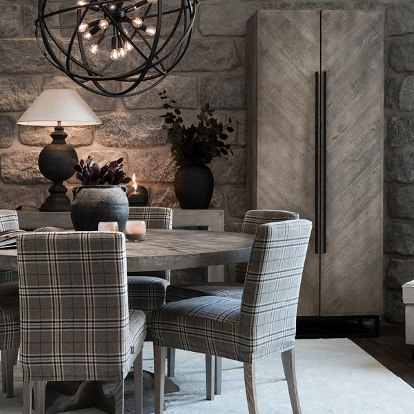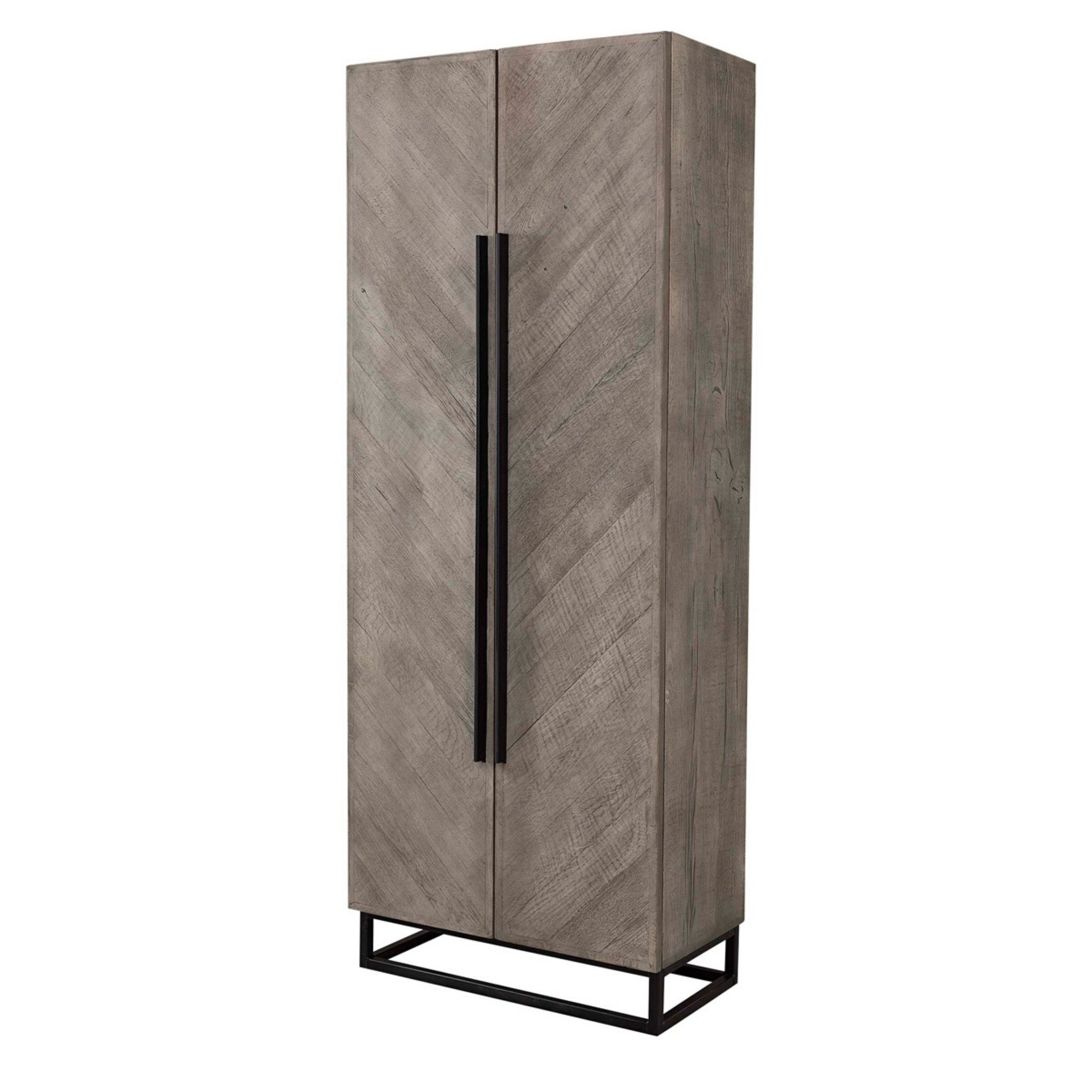 Läckert ochr rustikt ekskåp i finishen Pebbles Grey med härlig finish och rejäl känsla. En snygg inredningsdetalj.