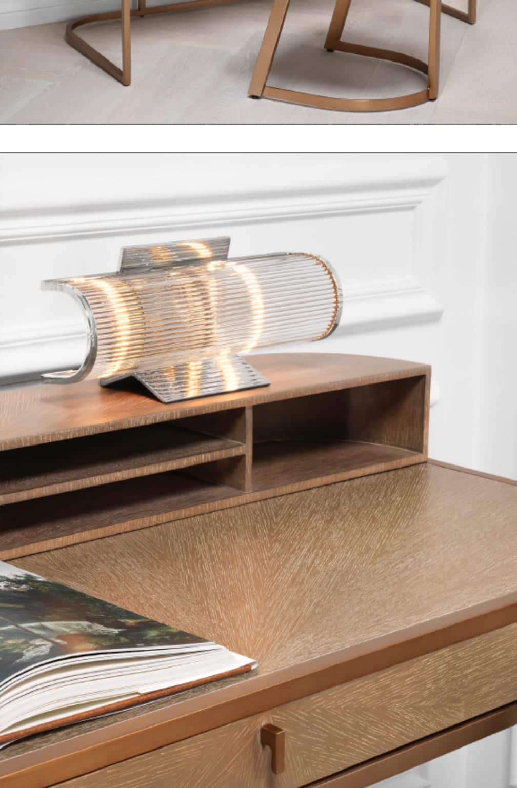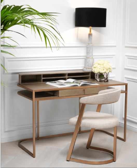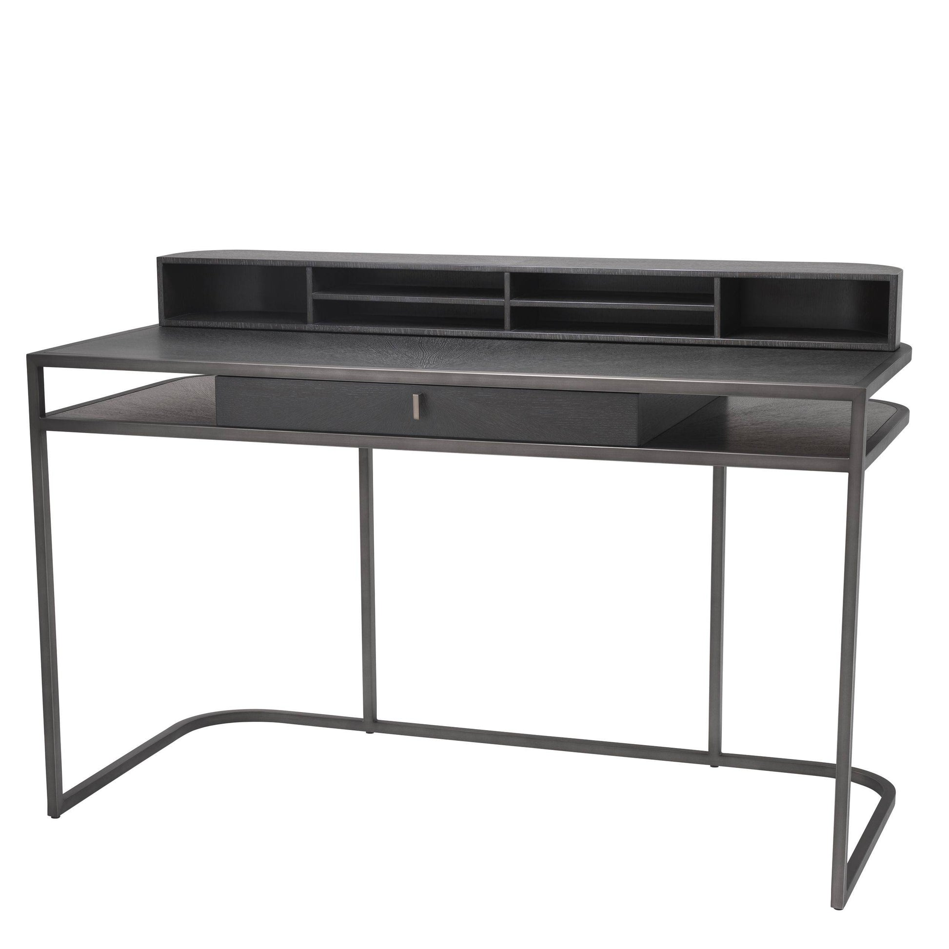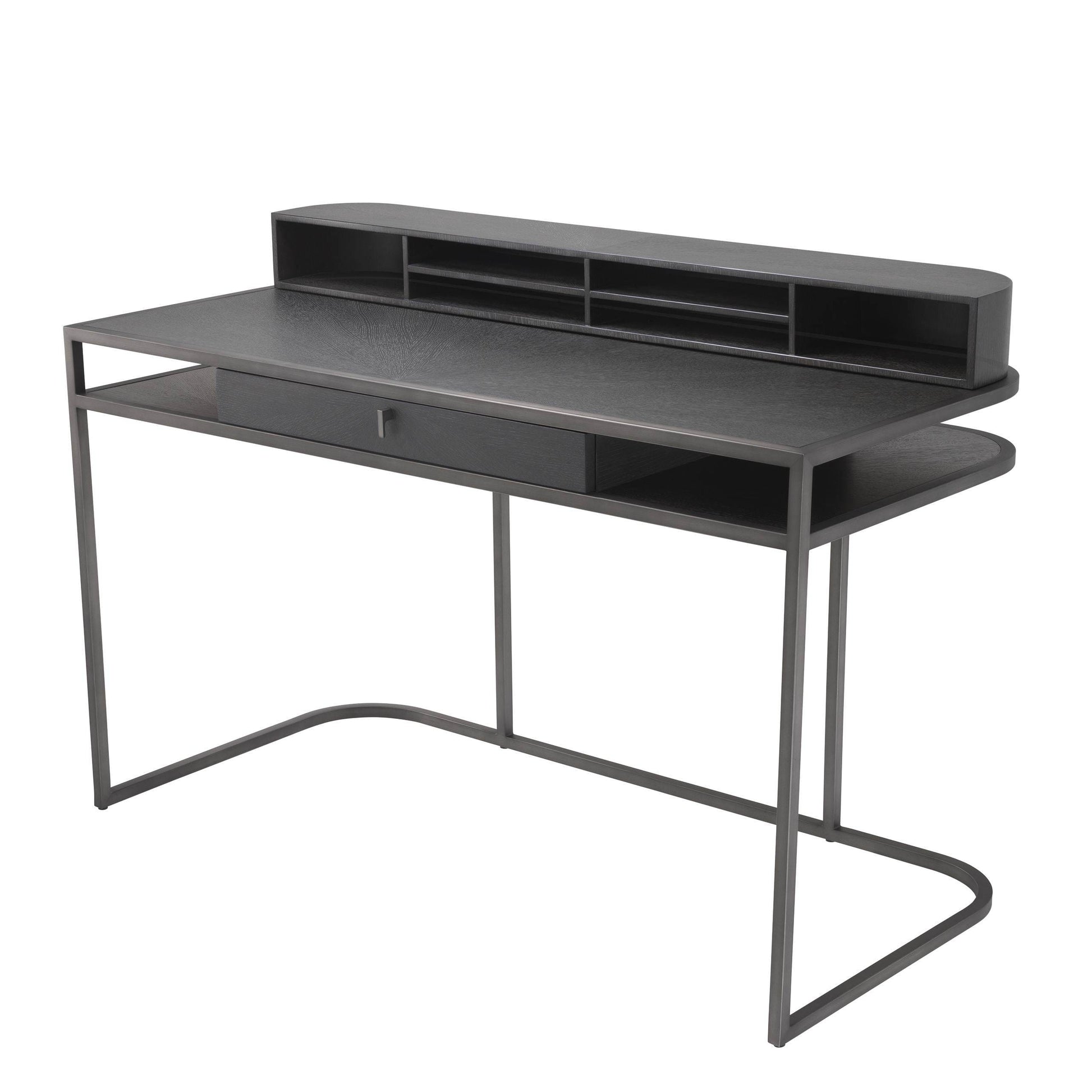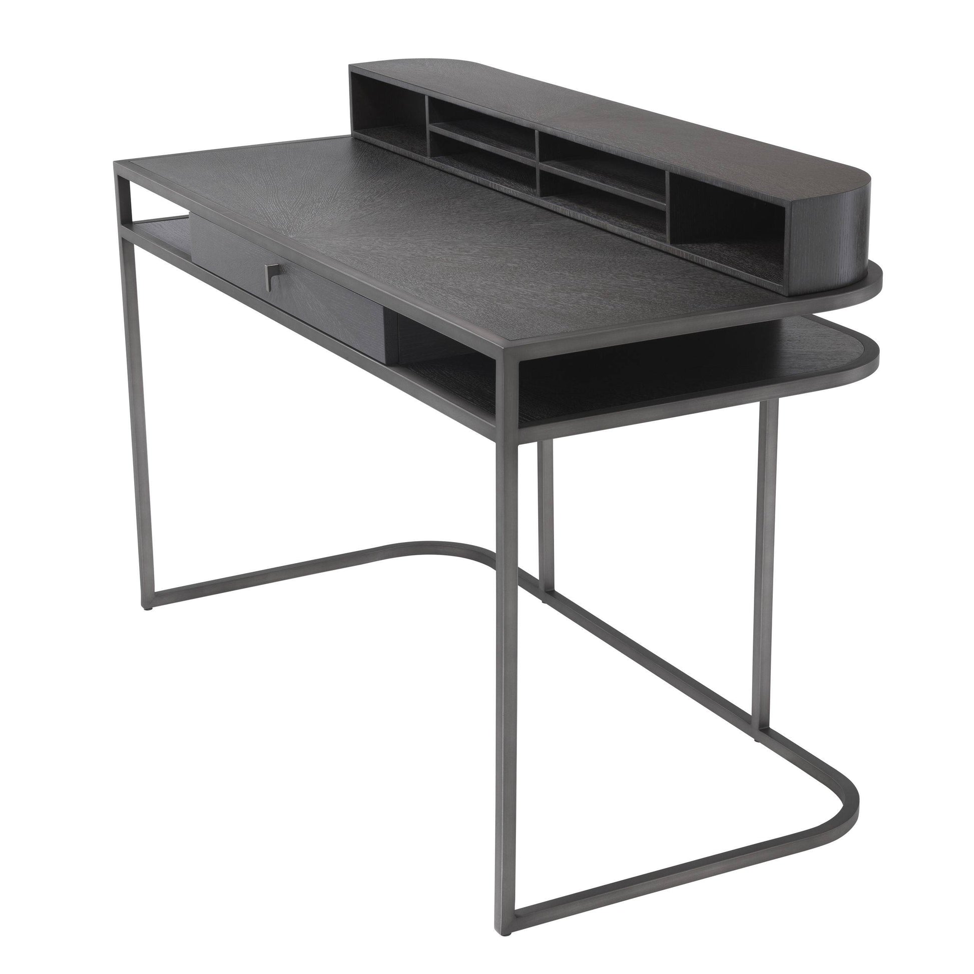 Välformat skrivbord med benställning i metall och härlig ekfanér med fenomenal finish. Mycket läcker inredningsdetalj till kontoret eller hörnan i sovrummet med läcker retro-känsla.
