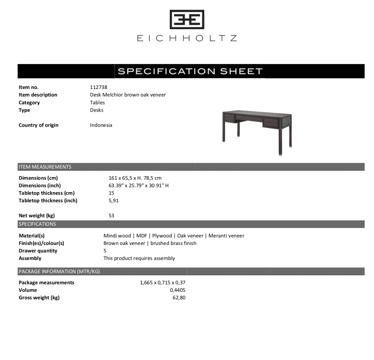 Desk Melchior från Eichholtz. Mycket genuint och snyggt skrivbord i mörkbetsat ekfanér och borstad mässingsfinish. Exklusivt och lyxigt!