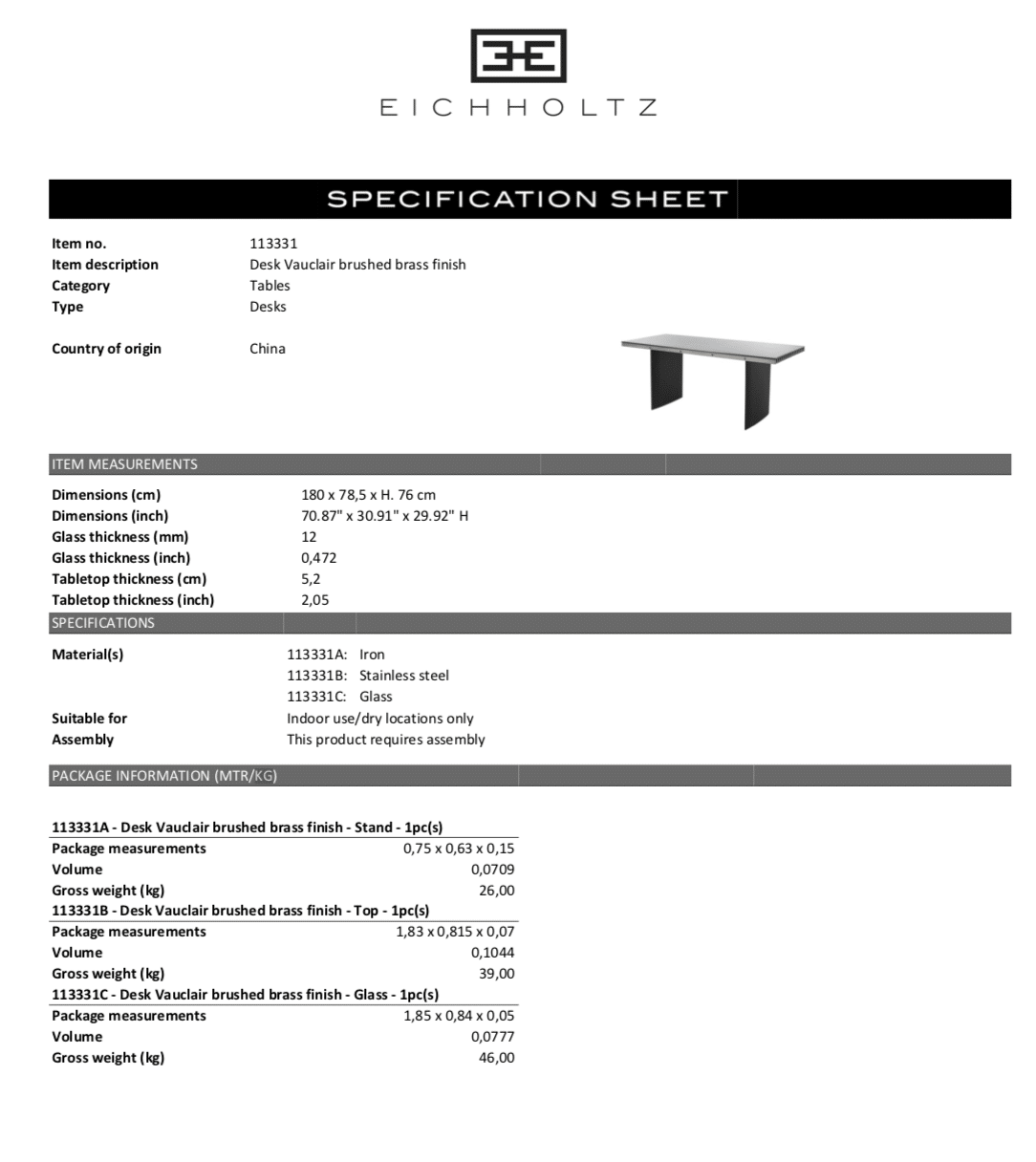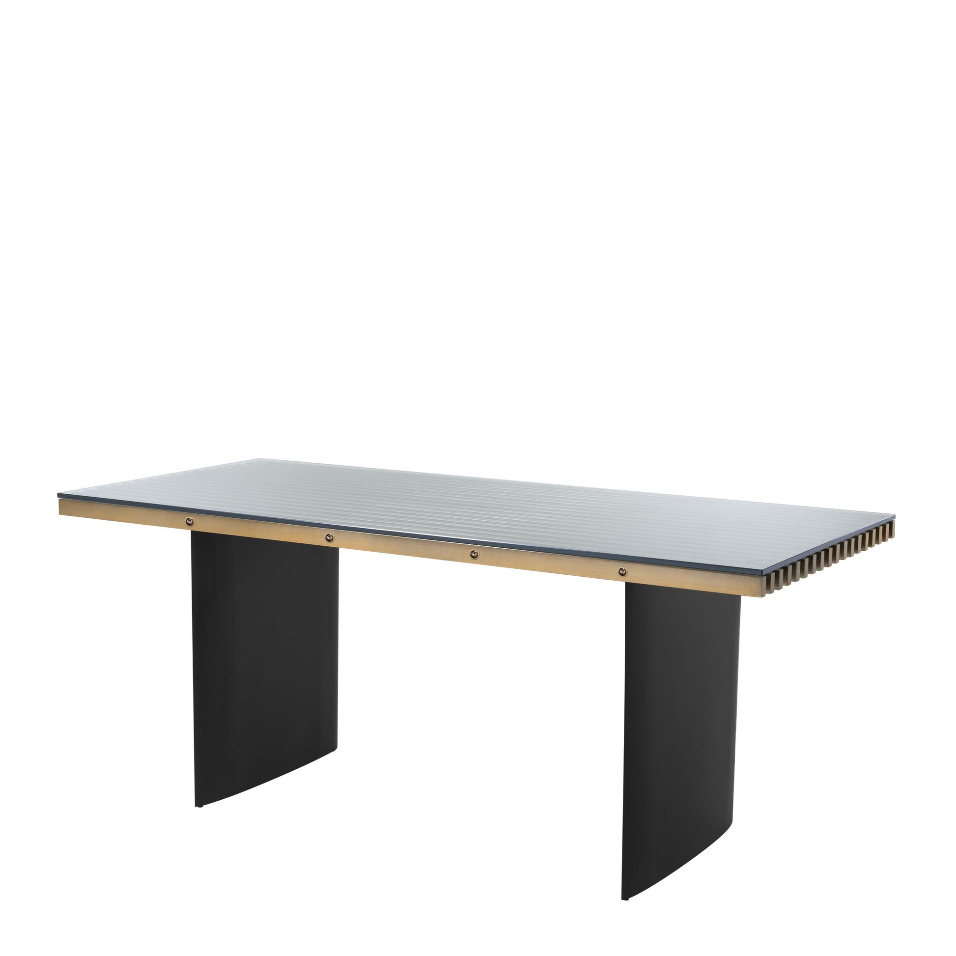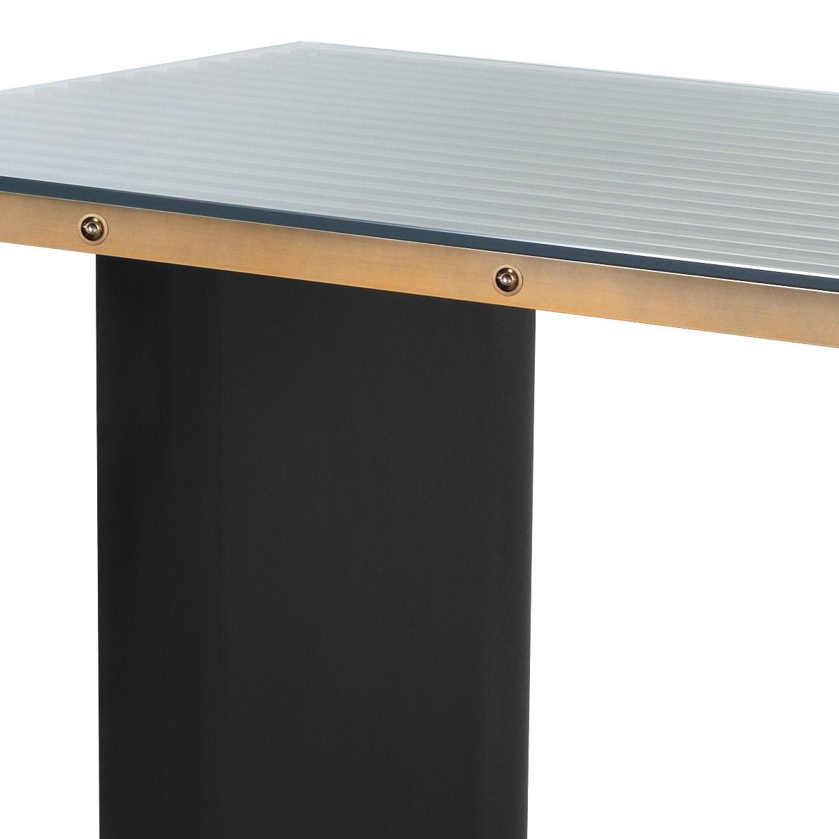 Ett mycket exklusivt och läckert skrivbord i svart och borstad mässingsfinish toppat med en rejäl glasskiva för en lyxig och snygg design till den medvetna inredningen.