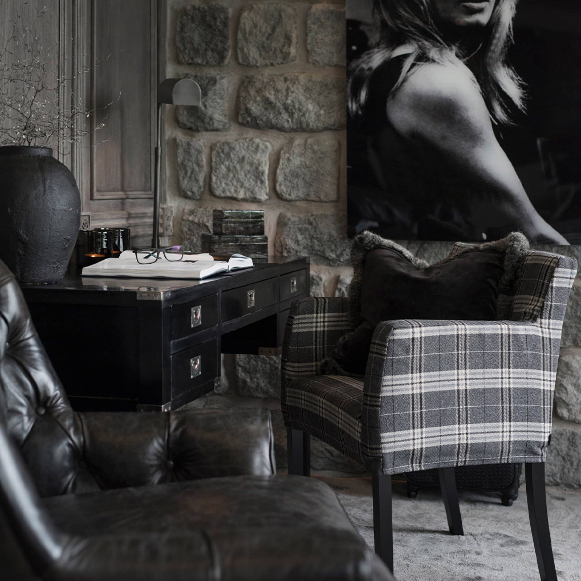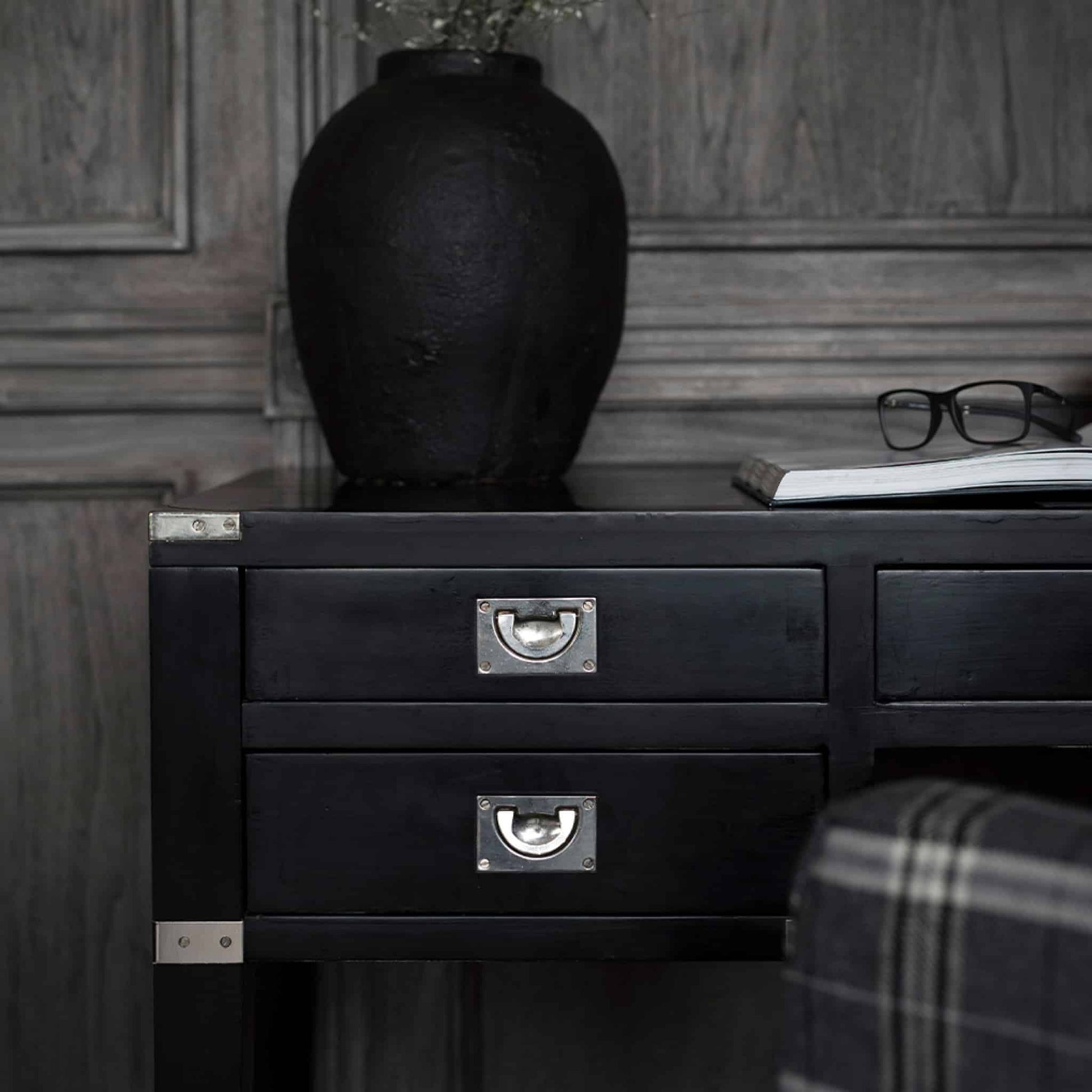 Härligt och läckert skrivbord i ypperlig finish av svartlackerat björkträ eller väderbiten ek.. En mycket elegant och stilfull möbel som snabbt blir en favorit i hemmet.
