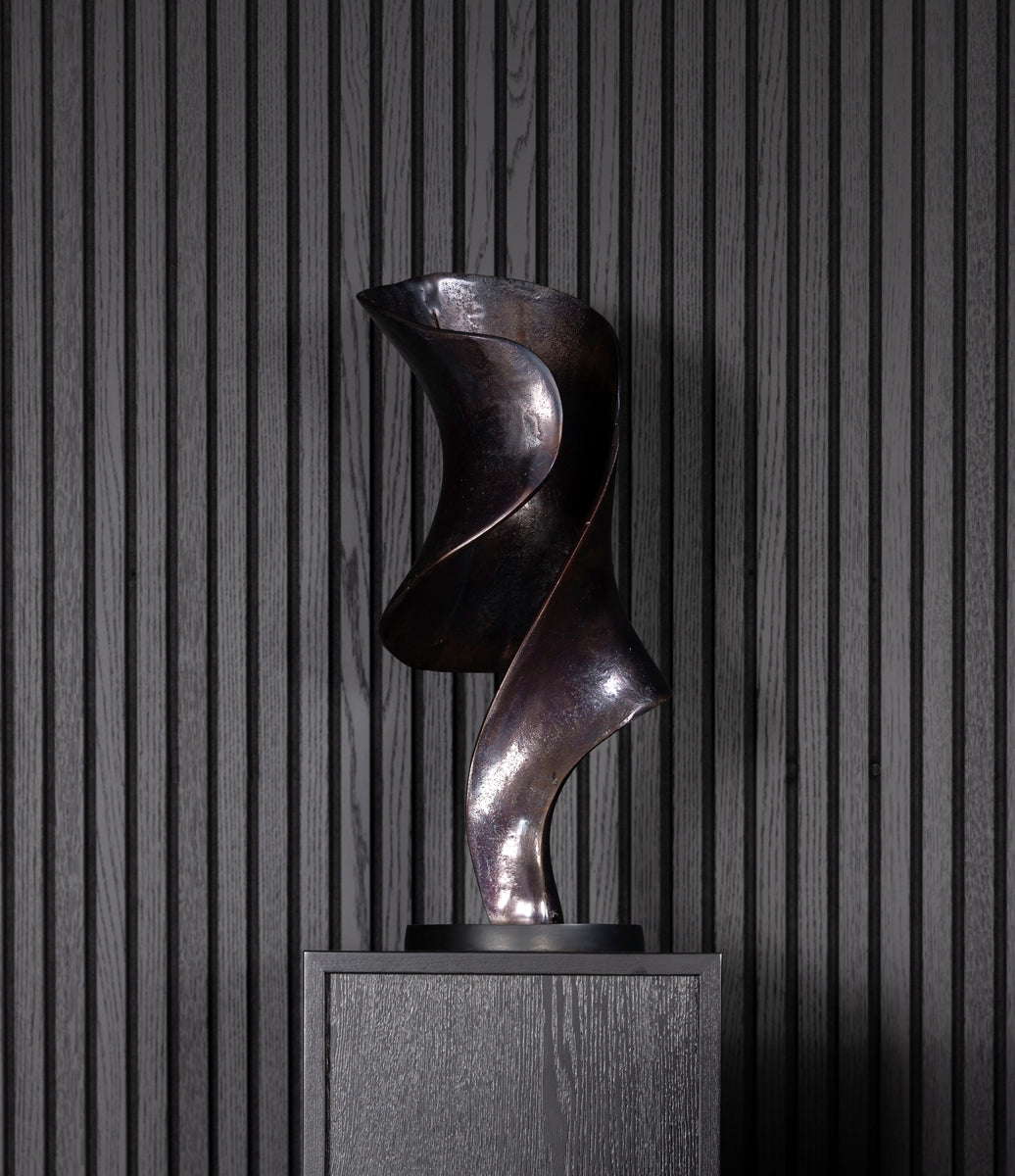 Denna imponerande metallskulptur i aluminium från Artwood kombinerar tidlös elegans med modern design och ger rummet en distinkt karaktär. Skulpturens höjd och konstnärliga form gör den till ett självklart blickfång som sätter prägel på både små och stora utrymmen. Placera den direkt på golvet för en djärv och minimalistisk effekt, eller ställ den på ett lågt sidobord för att framhäva dess detaljer och skapa ett sofistikerat uttryck.
