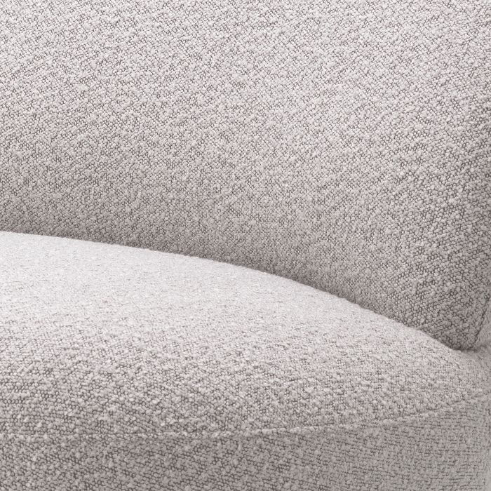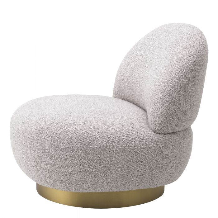 En mycket härlig och snygg snurrfåtölj med lekfull design, mjukt formspråk och det underbara bouclétyget här i grå färg. Denna fåtölj blir snabbt en favorit i inredningen och hemmet.