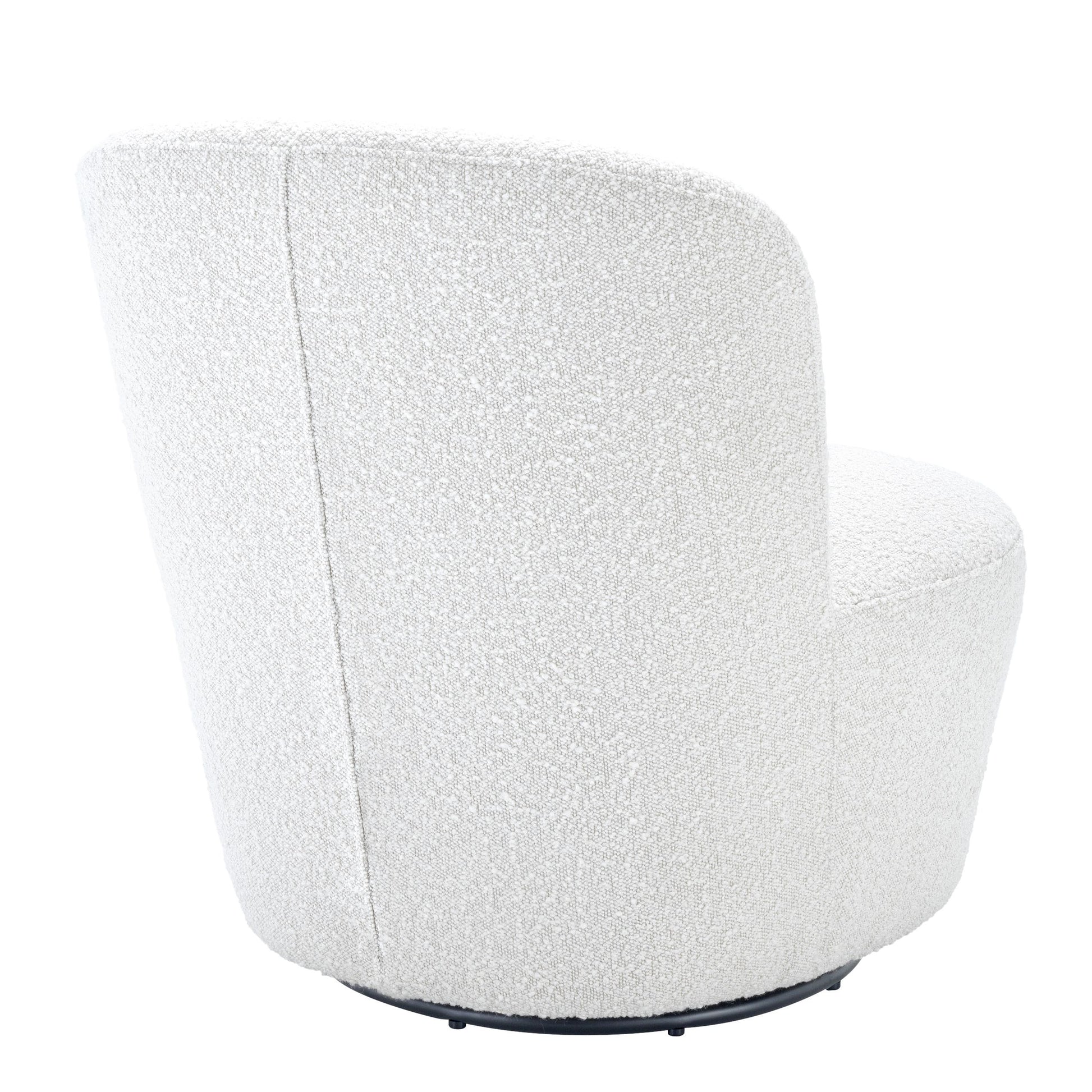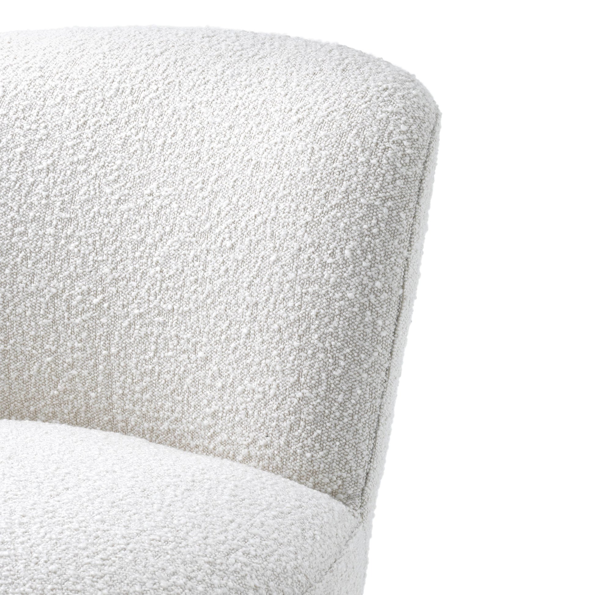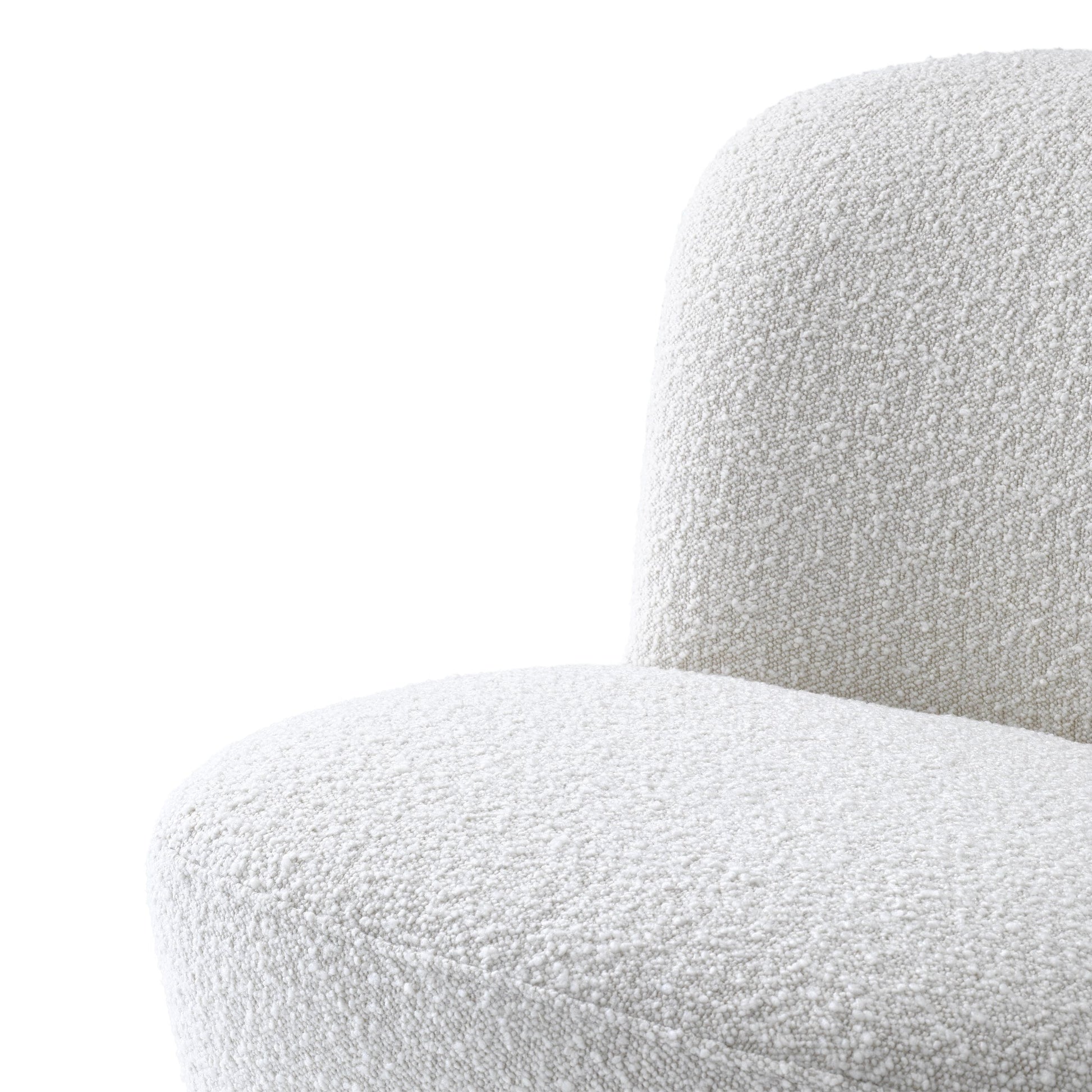 Läckert formad och designad fåtölj med härlig klädsel och mjuka former. Det omåttligt populära tyget Bouclé Cream eller Canberra Cream och nästintill osynliga basen som gör stolen snurrbar bidrar att denna designfåtölj blir en mycket härlig accent till din inredning.