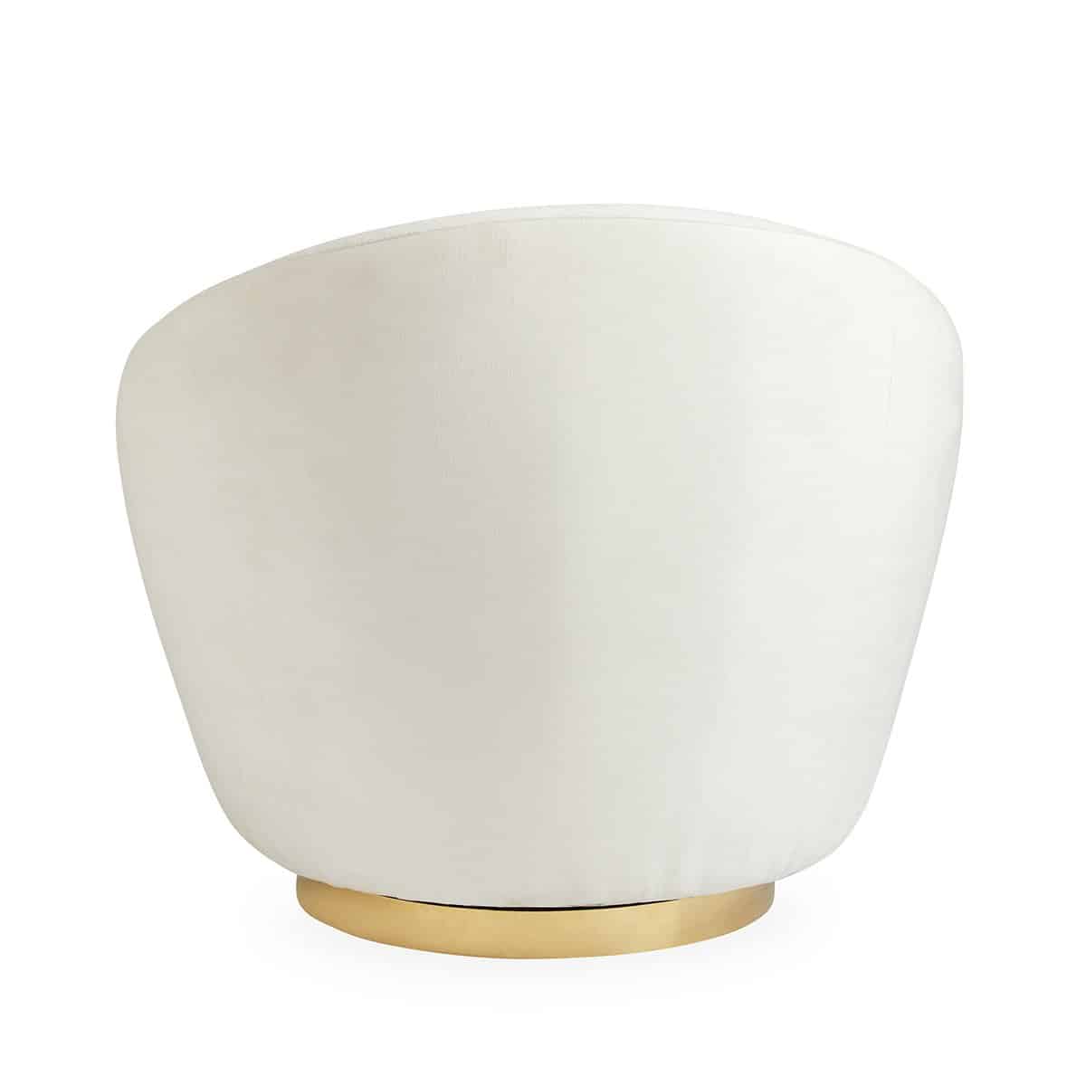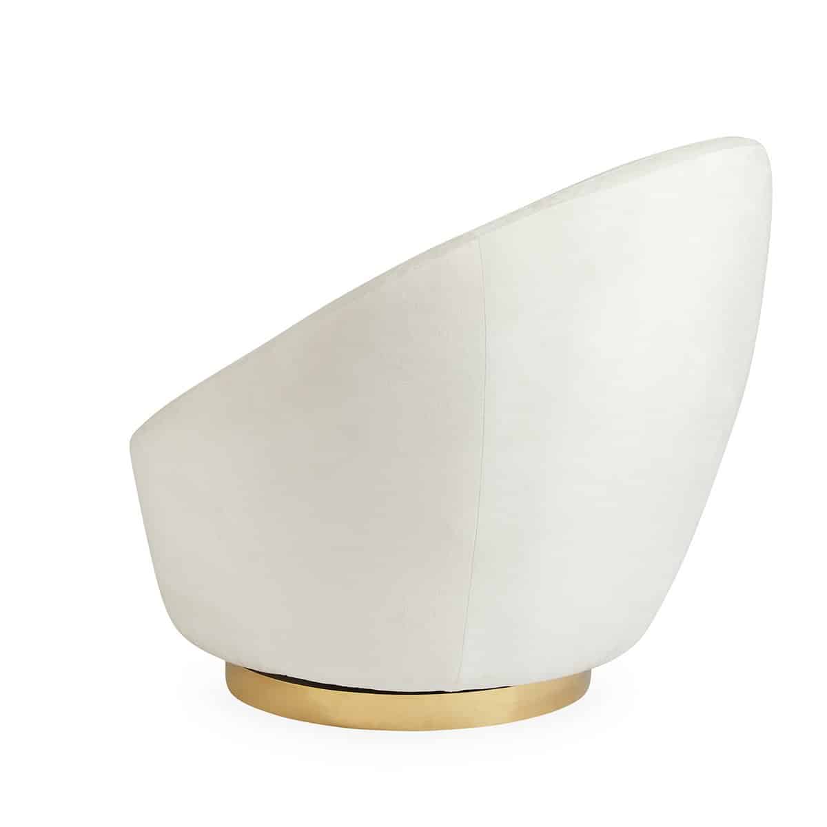 Our signature Ether Chair silhouette perched atop a twinkly brass recessed base. Pairing the capsule-inspired silhouette with the ultimate swivel-rocker experience catapults cocoon-y comfort to the next level. But be warned: you’ll never get out of this chair. Elegant (and exceptionally hardworking) Bergamo Snow velvet finishes off the cozy and kinetic fabulousness.
