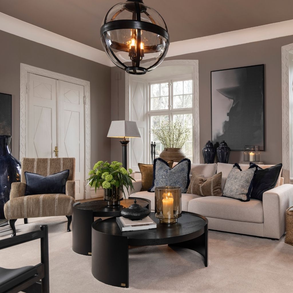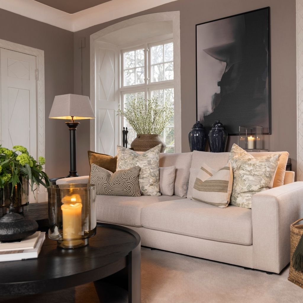 Den djupa och bekväma sitsen skapar en avslappnad sittupplevelse, perfekt för både sociala stunder och lugna kvällar. Två dekorationskuddar ingår och ger extra stöd samt en ombonad känsla. Havana är klädd i tyg i färgen Rave Natural, en ljus och harmonisk nyans som bidrar till ett luftigt och sofistikerat intryck.