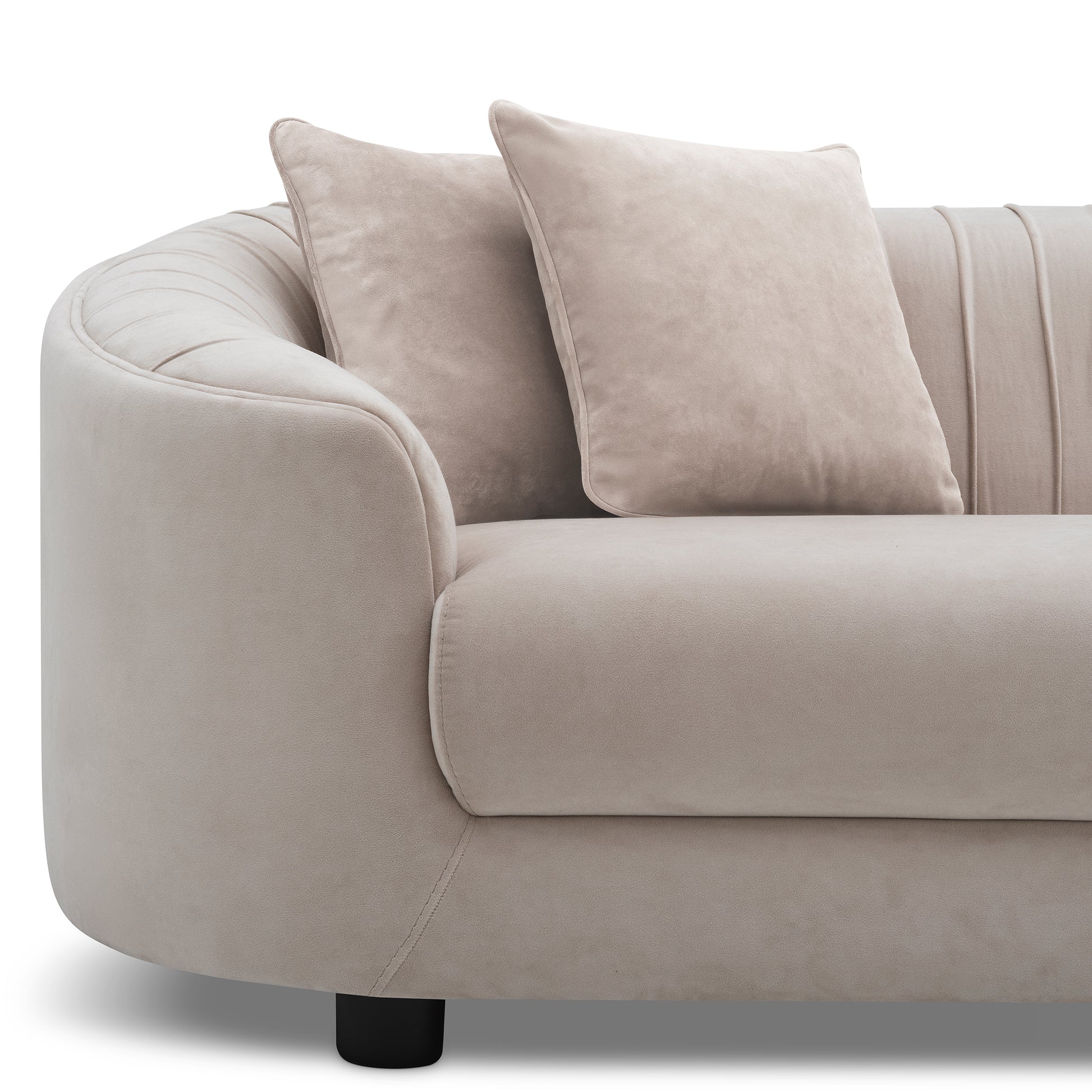 Soffan Jameson från Eichholtz i Amaro Cream erbjuder en mjuk, ljus tygklädsel som förenar komfort med stil. De slanka svarta benen tillför en modern touch, vilket gör soffan till ett iögonfallande inslag som kombinerar elegans och hållbarhet med enkel, tidlös charm.