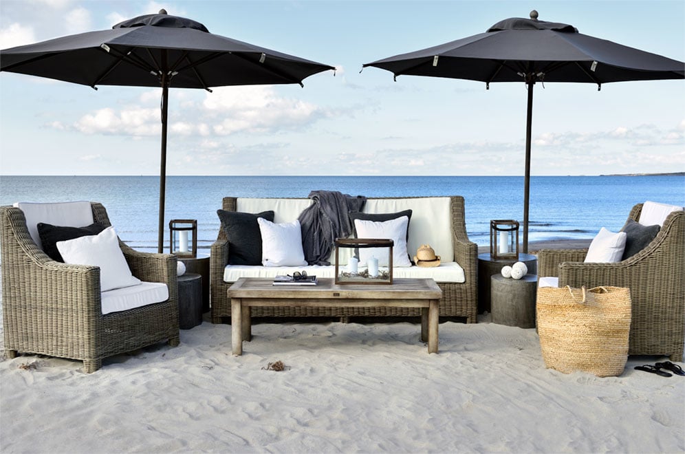 En härlig och mycket snygg utomhussoffa i konstrotting som tillsammans med en stomme i aluminium ger ett mycket vädertåligt utförande.