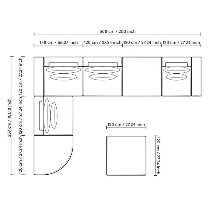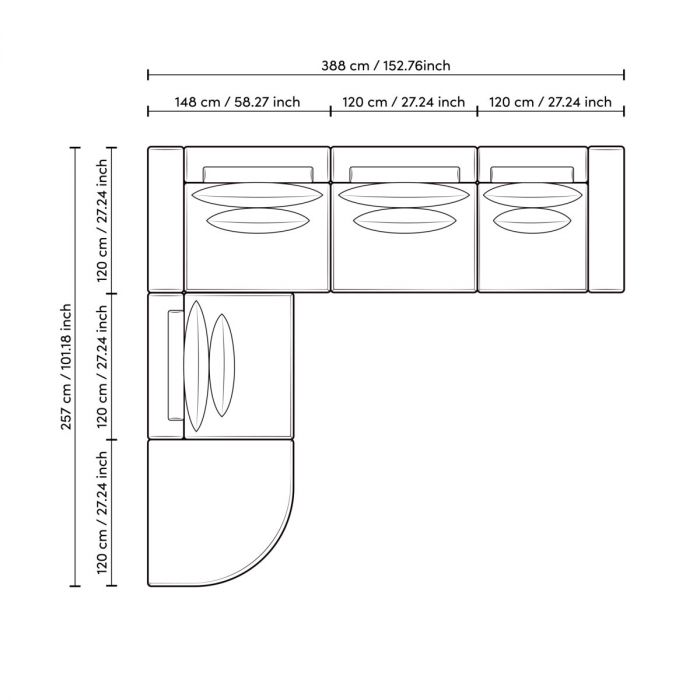 Dess innovativa design möjliggör olika uppställningar för att passa perfekt in i ditt utrymme. Designad med en halvrund ottoman förenklar denna designsoffa från Eichholtz både avslappning och komfort i kombination med exklusivt utseende. Med stöd av eleganta svarta fötter har denna soffa en chic och samtida look för att höja ditt vardagsrum.