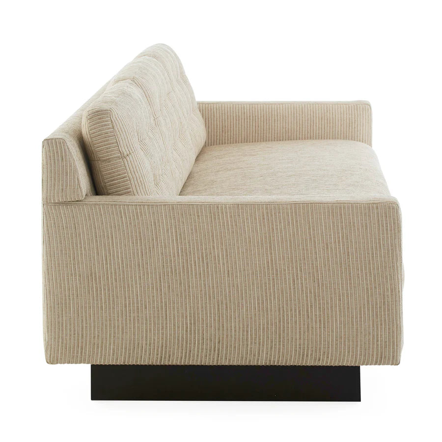 Soffan Wright från Jonathan Adler passar perfekt när du söker en ren och tidlös estetik. Med naturligt pärlskimrande sammet över infällda baser i valnöt kombinerar de klassiska linjer med modern komfort. Den generösa sittkudden och den mjuka stoppningen gör soffan till lika stilfulla som bekväma solitärer, samtidigt som de tillsammans skapar en elegant och sammanhållen sittgrupp i vilket rum som helst. I färgen DublinOatmeal.