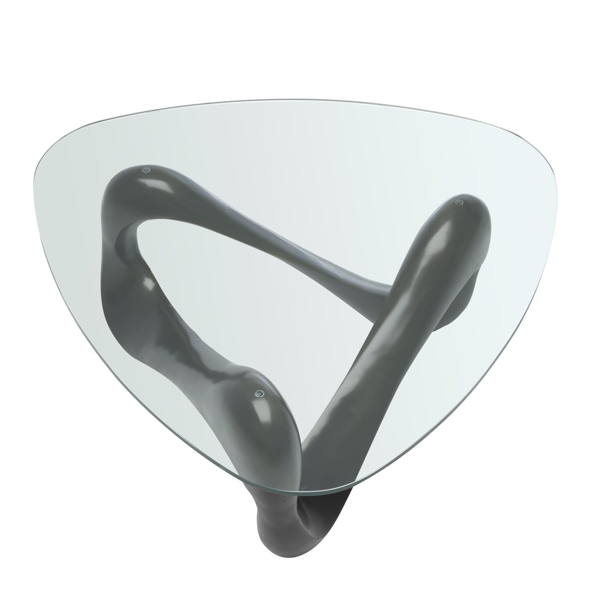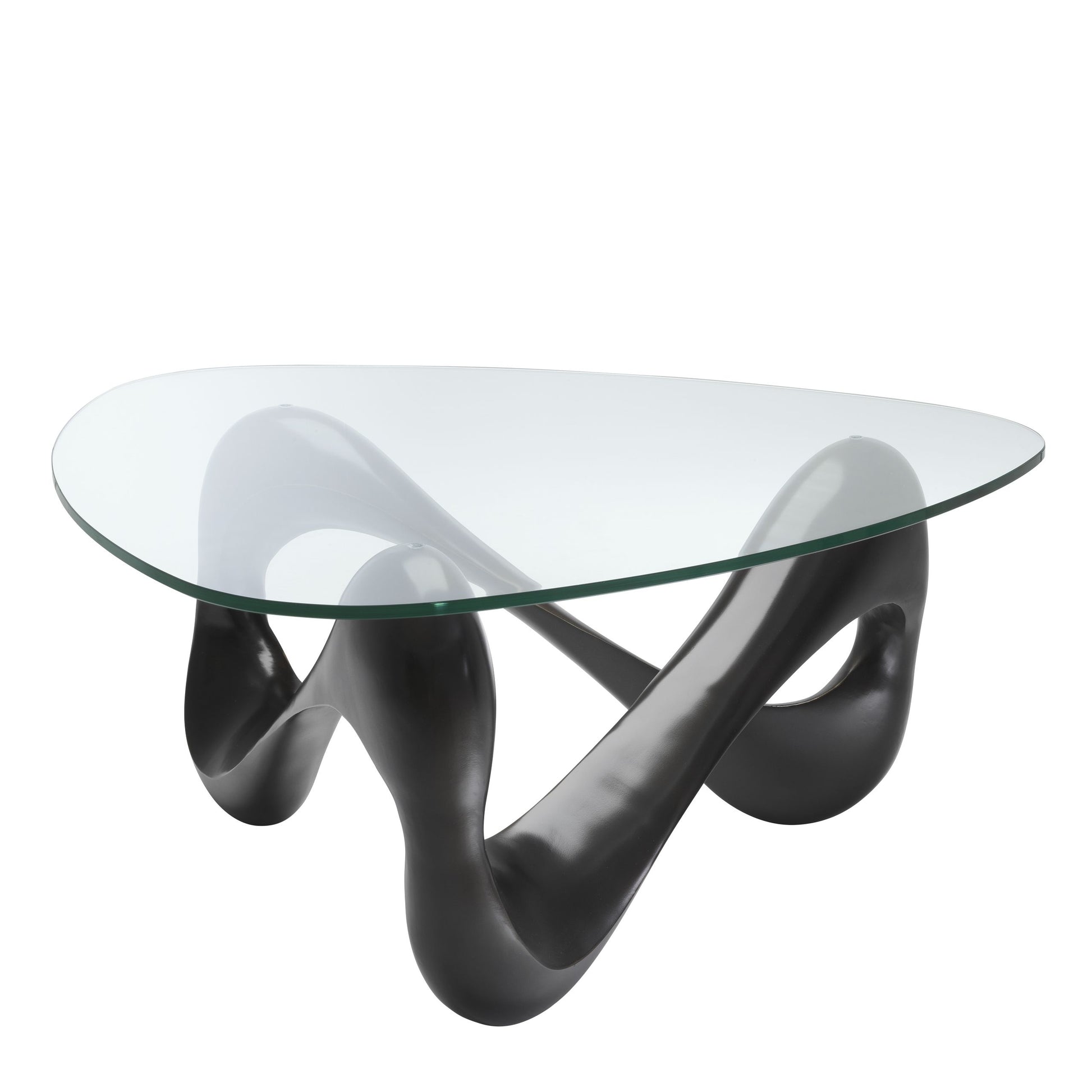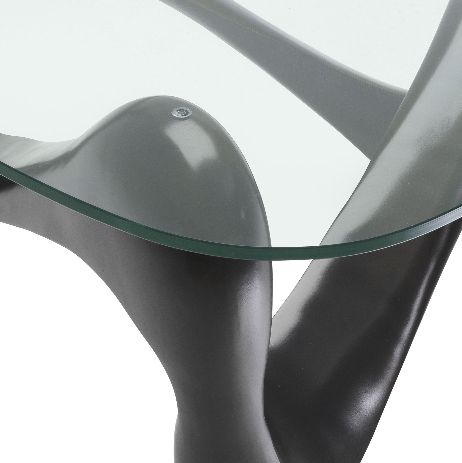 Ett soffbord som är ett riktigt härligt konstverk! Tillverkad i aluminium och med en snygg bronsfinish och läckert designspråk toppas detta mästerverk med en triangelformad glasskiva med rundade hörn. Ett soffbord som snabbt blir mycket omtyckt i de flesta inredningsstilar.