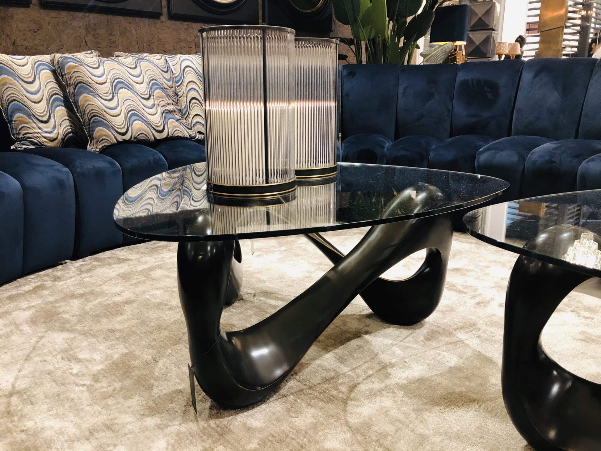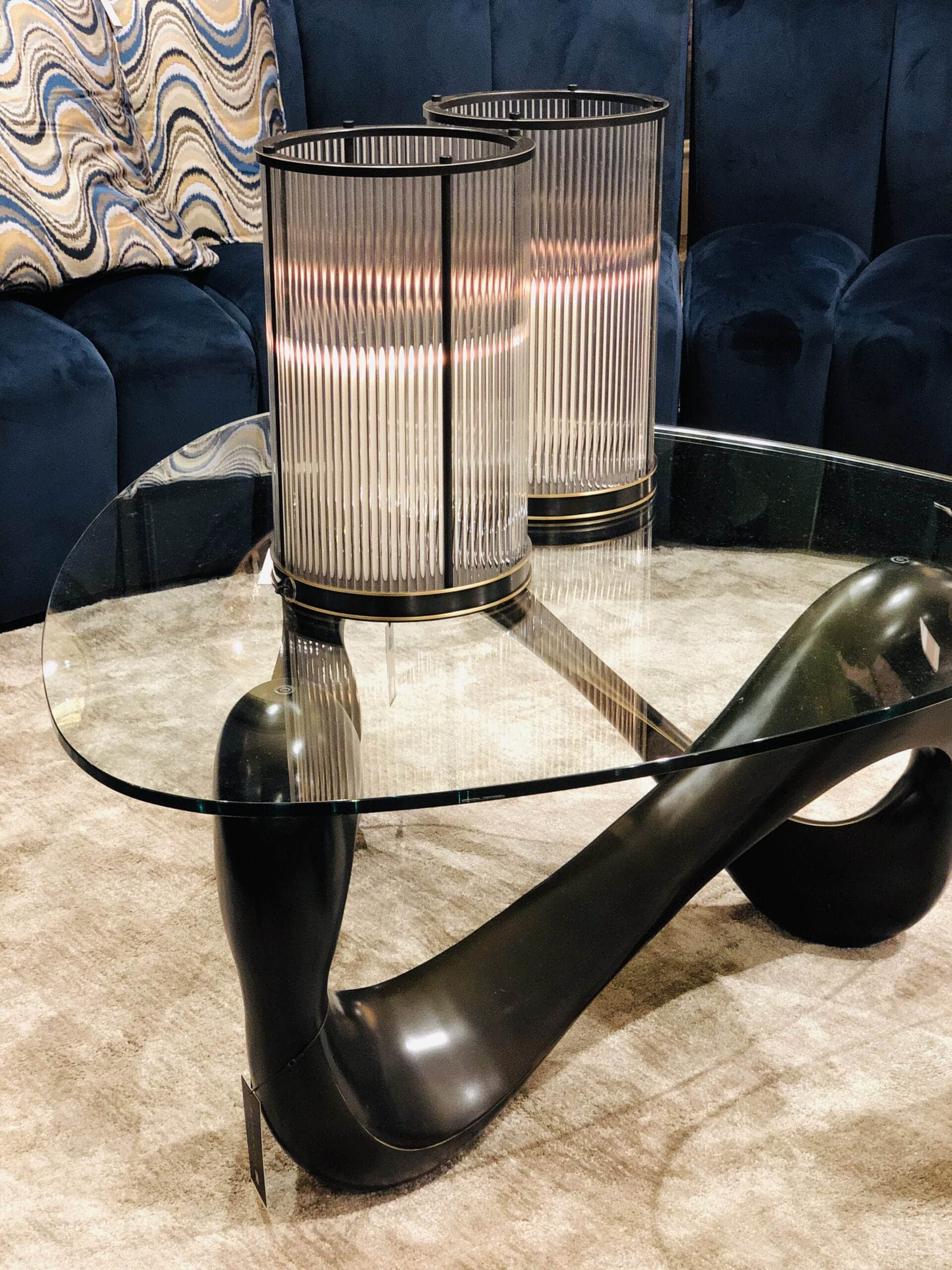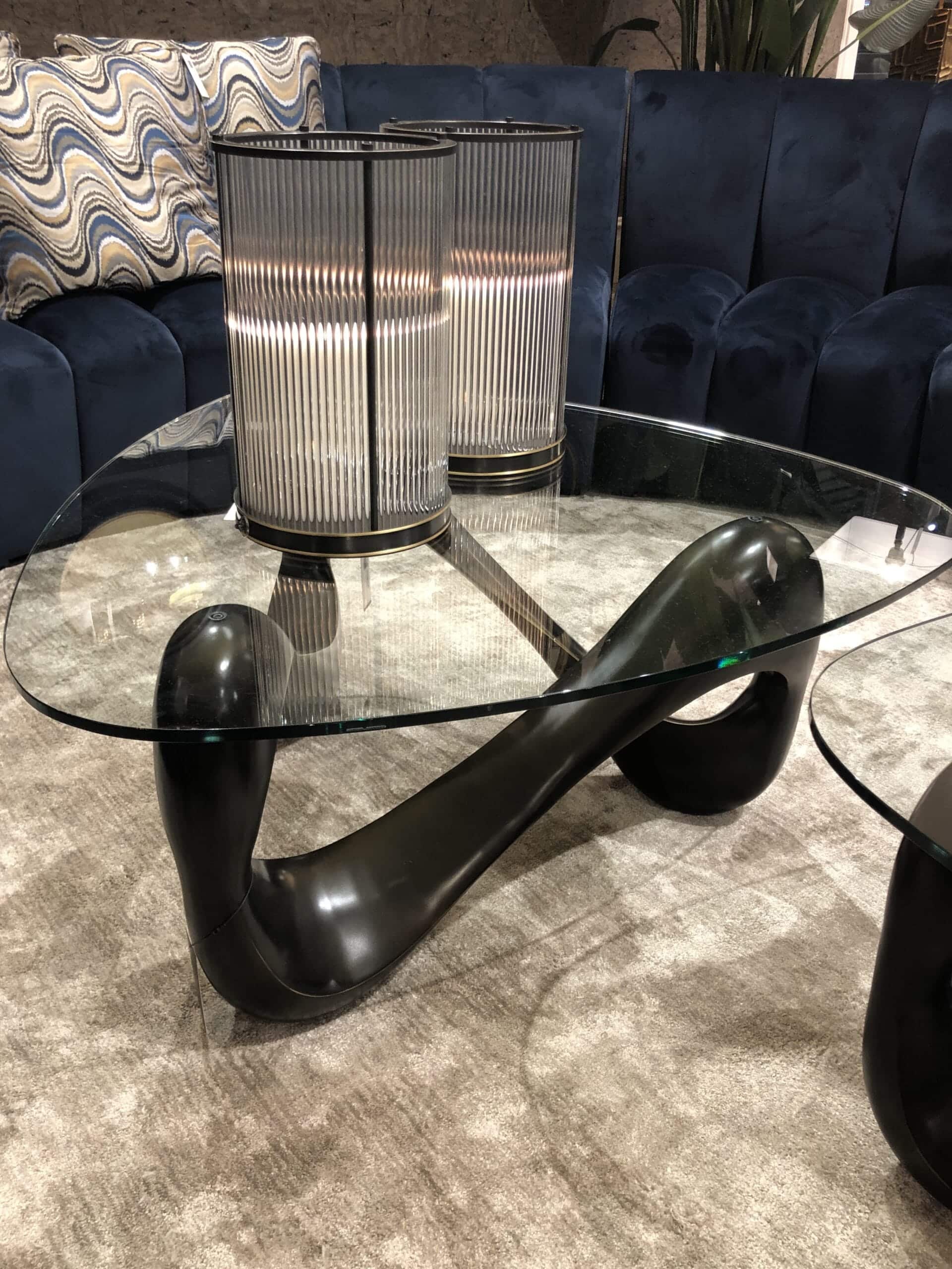 Ett soffbord som är ett riktigt härligt konstverk! Tillverkad i aluminium och med en snygg bronsfinish och läckert designspråk toppas detta mästerverk med en triangelformad glasskiva med rundade hörn. Ett soffbord som snabbt blir mycket omtyckt i de flesta inredningsstilar.