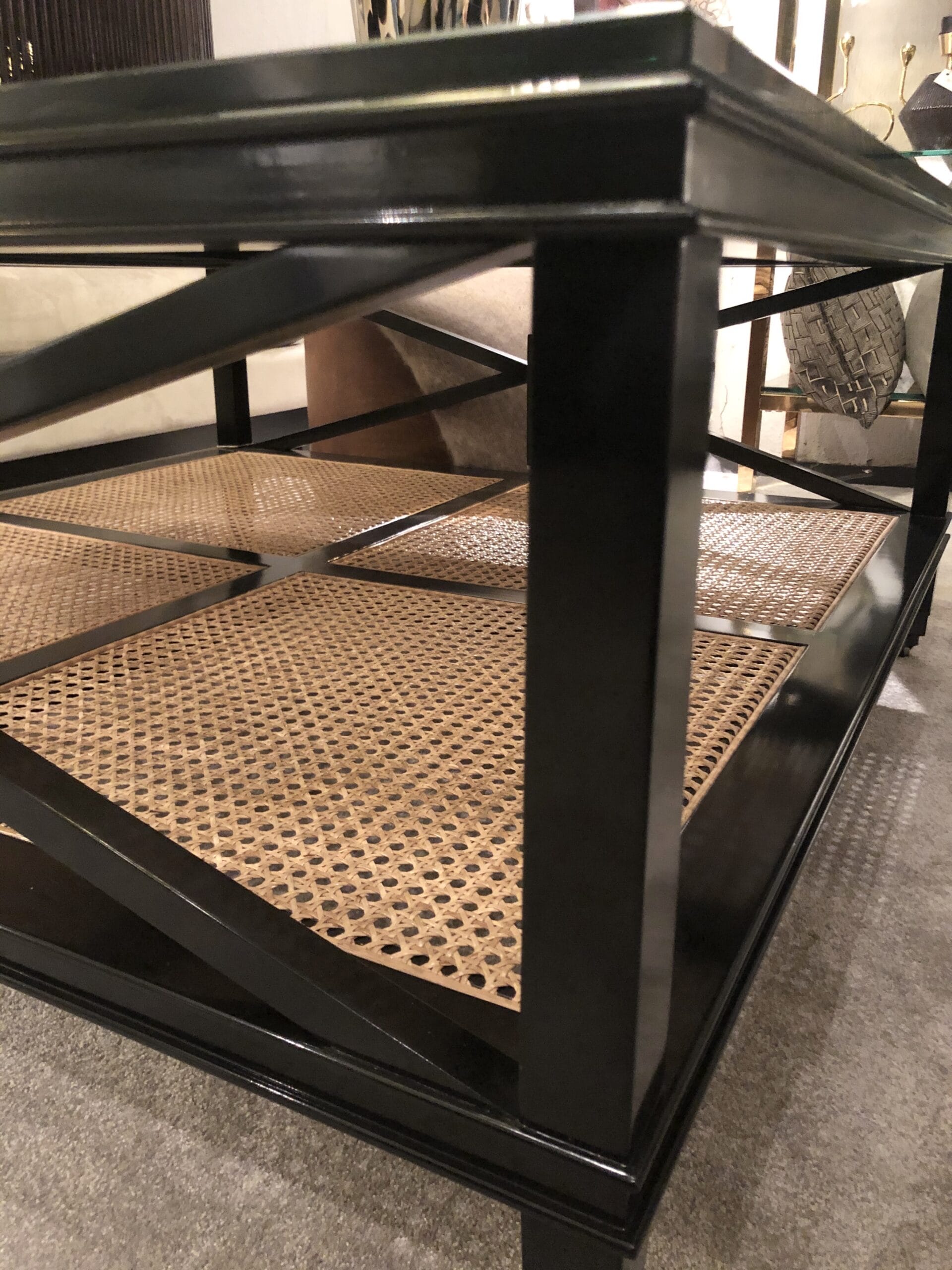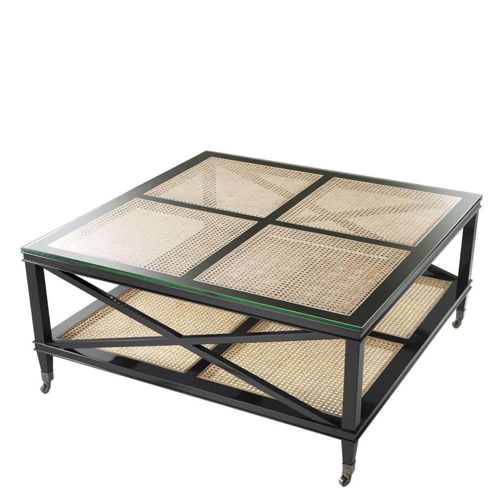 Bahamas Soffbord från Eichholtz utstrålar sofistikerad elegans med sin stilrena pianovita finish och vackra detaljer i naturlig rotting. Den genomskinliga glasskivan reflekterar modern finess och ger en känsla av lätthet och exklusivitet.